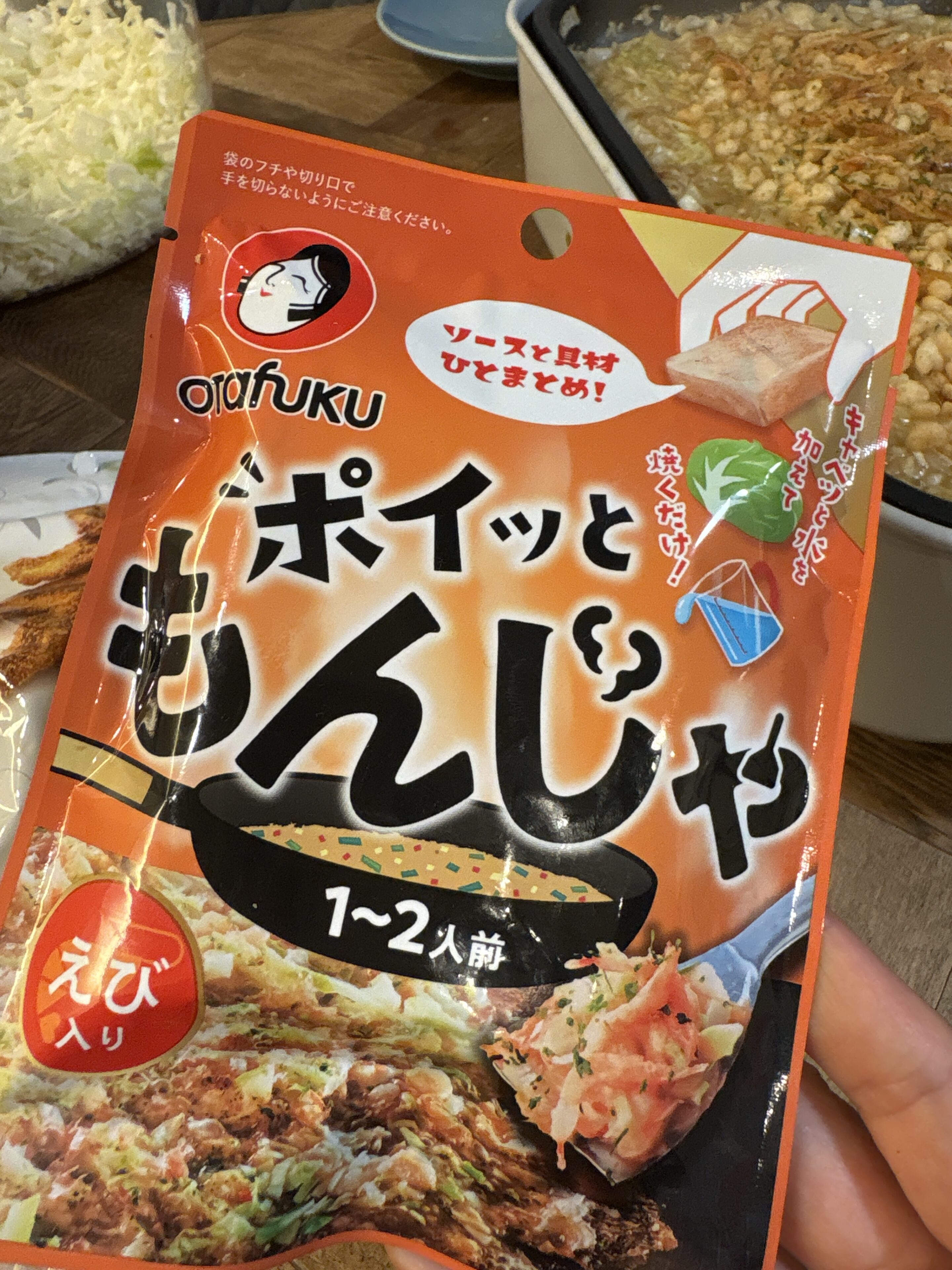 前にお店で食べておいしくて楽しかったようで、家でもしてみようと思い【ポイッともんじゃ】を買ってみました。