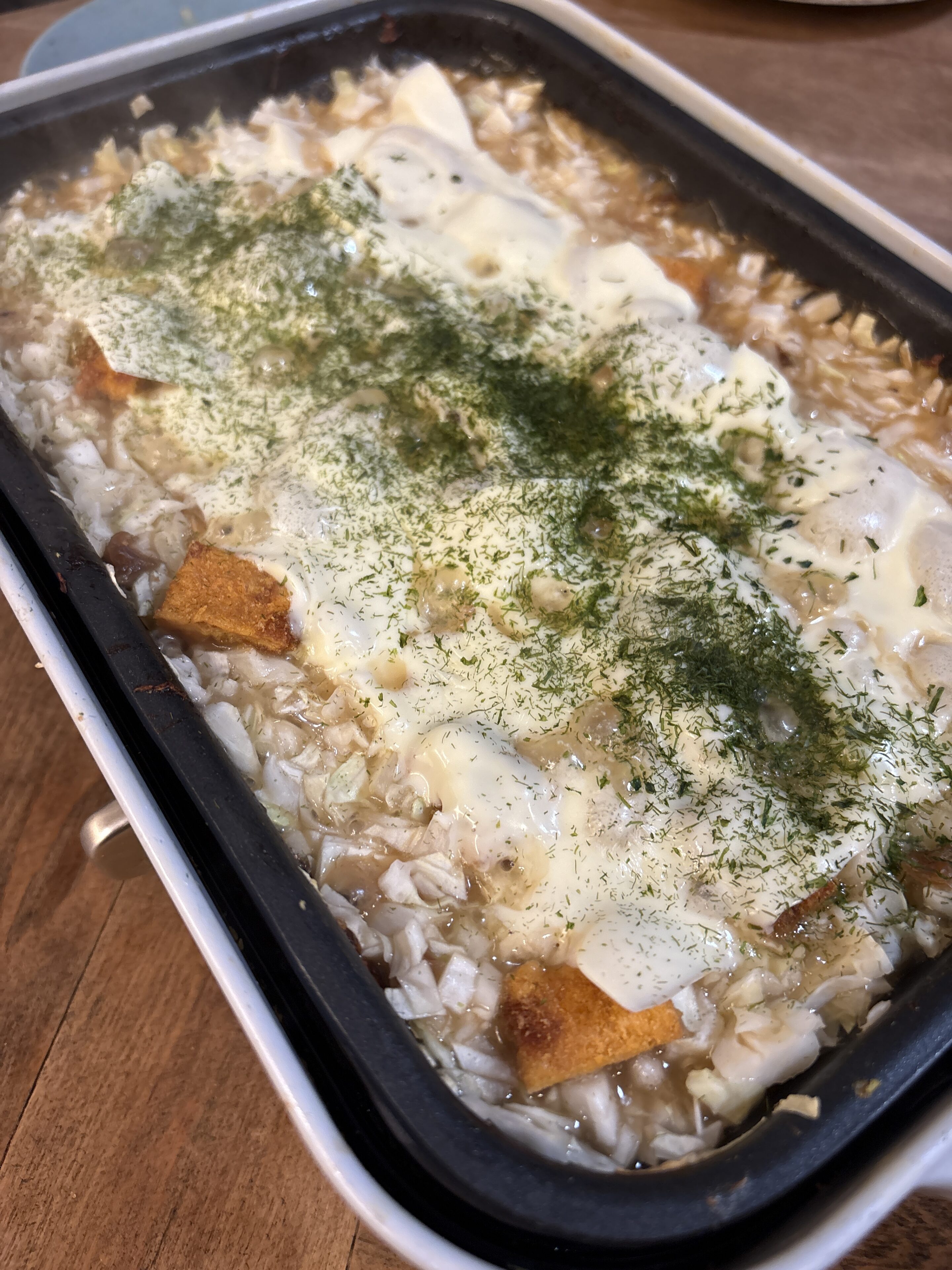 もんじゃ焼きを家でするのは初めて!