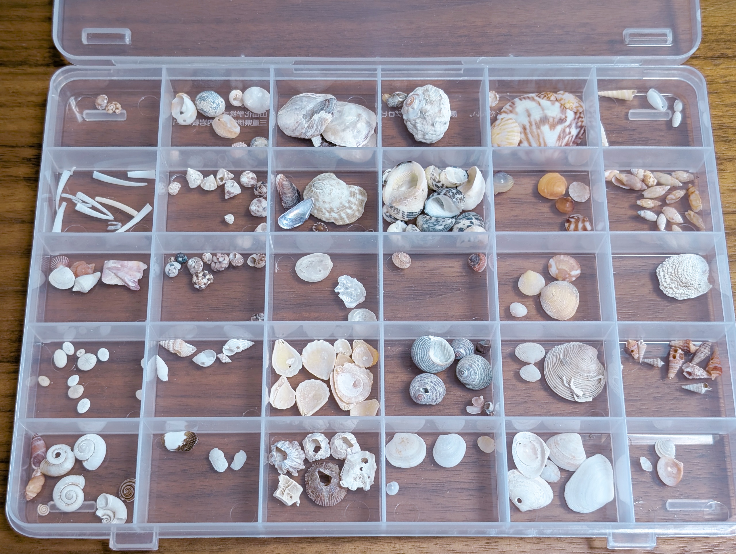 その中には、後から調べてみて、こんな貝も混じっていたんだと驚くものもあり、拾った時だけではなく、帰ってからも楽しみが続くのが面白いところです。