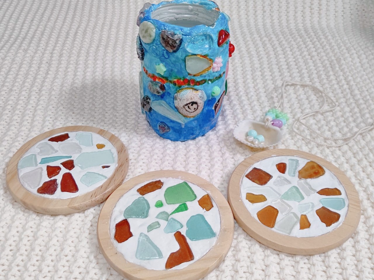 夏休みには、貝殻を使ったえんぴつ立てやコースター、サンキャッチャーやペンダントの飾りを作ったこともありました。