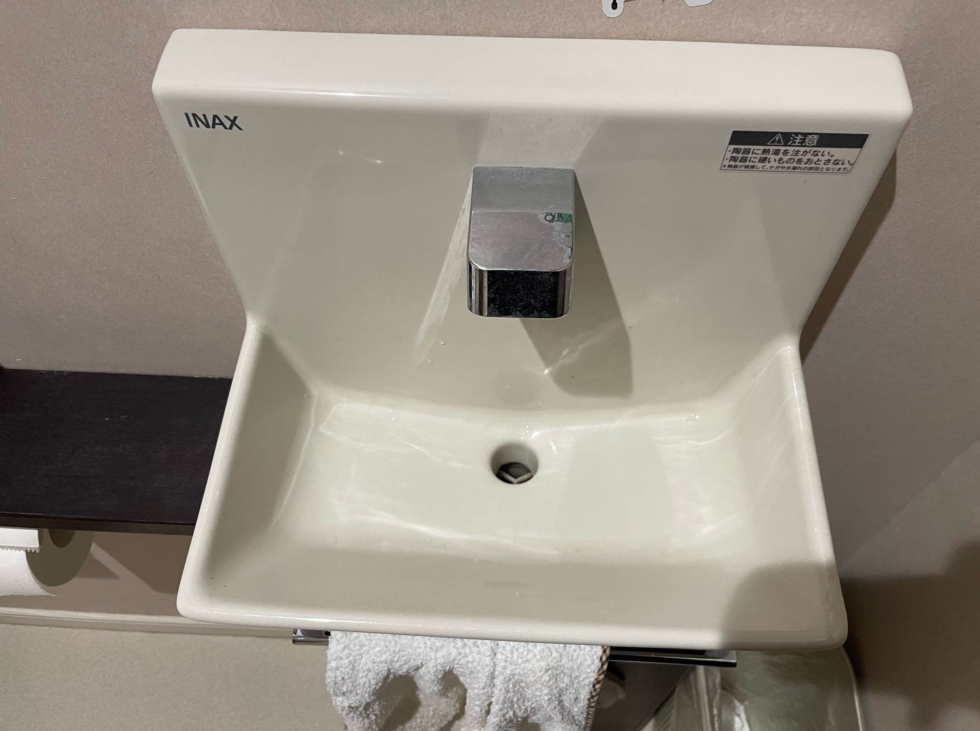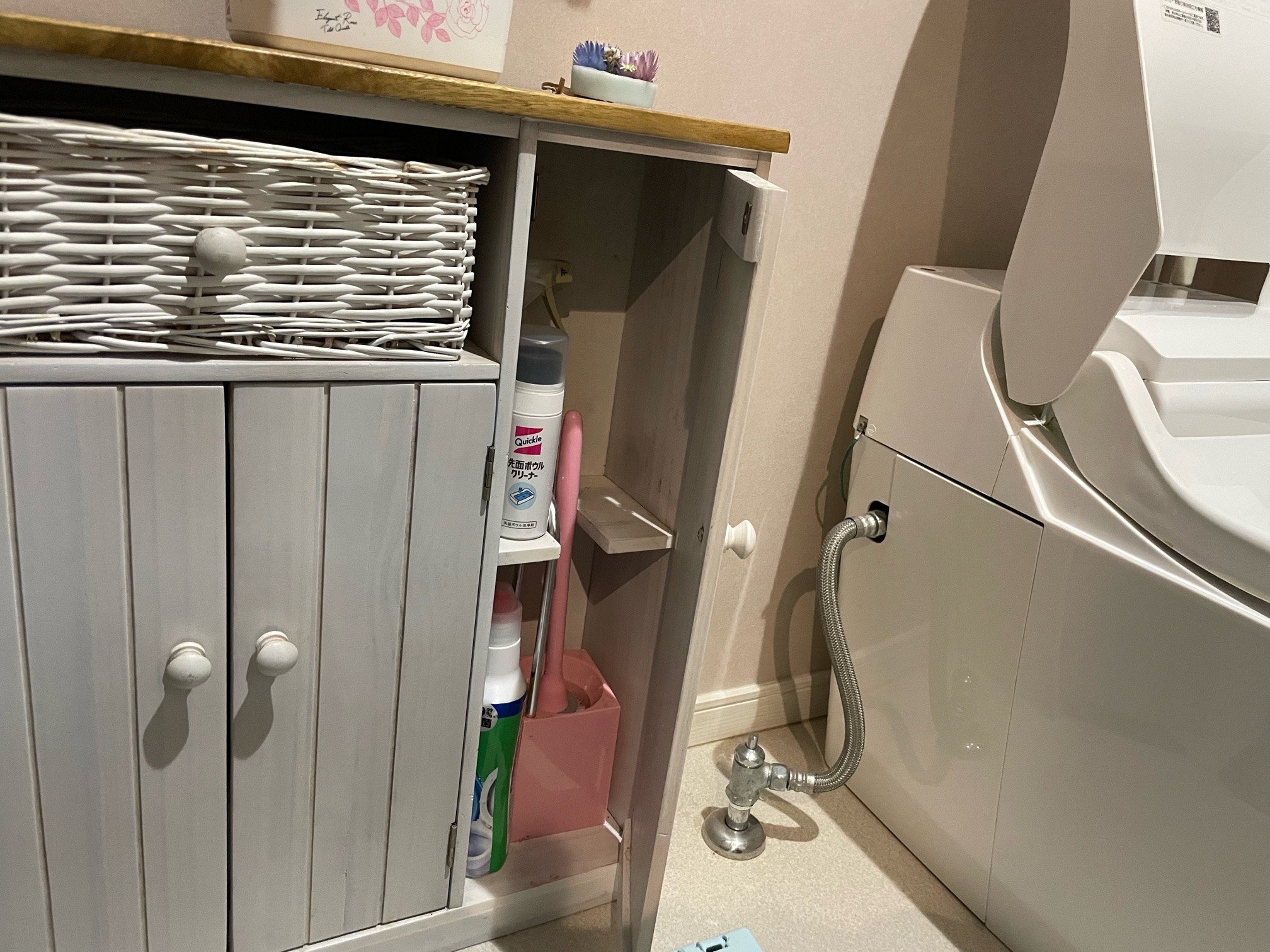 また、トイレ内にも手洗い場があり、洗面台と違いスポンジなど置く場所がないので普段はトイレ用の掃除用シートで軽く拭き取る程度。