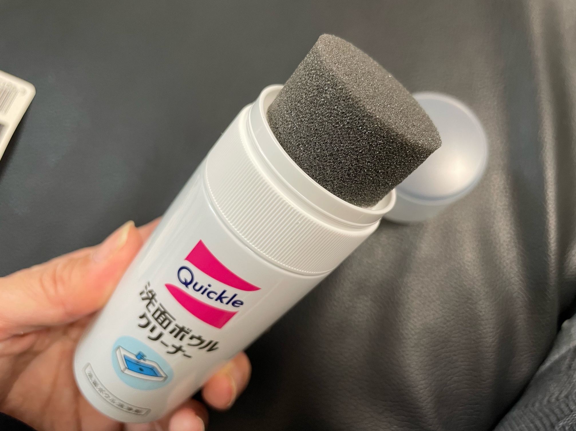 靴磨きクリーナーくらいの大きさで、コンパクトな印象のクイックル 洗面ボウルクリーナー。