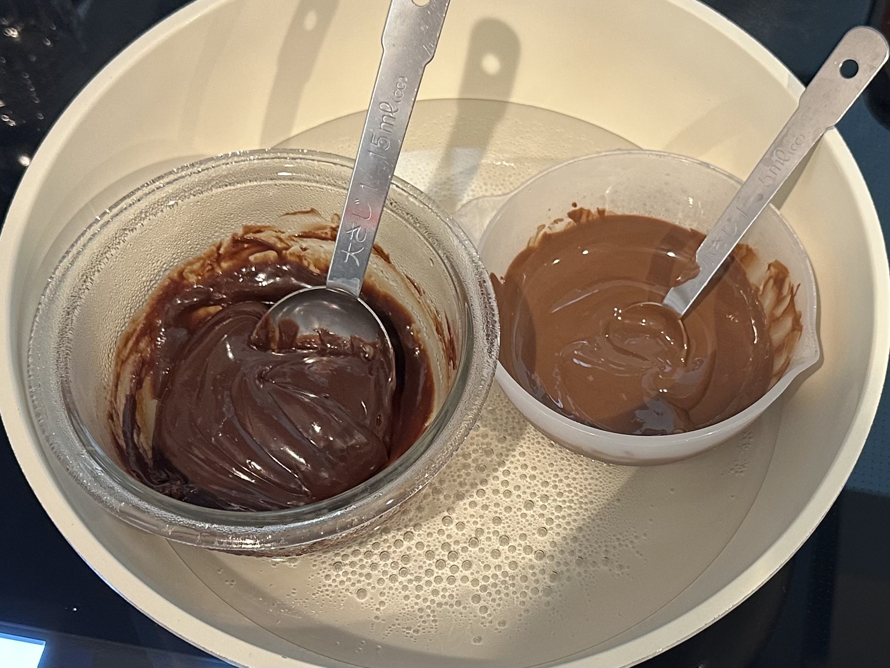 その場合は初めのチョコを入れたあと1度冷やす工程が必要になると思います。