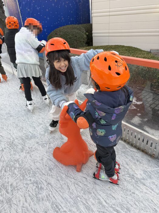 補助具を持って滑れるので怖がらずに無事にスケートデビューができました。