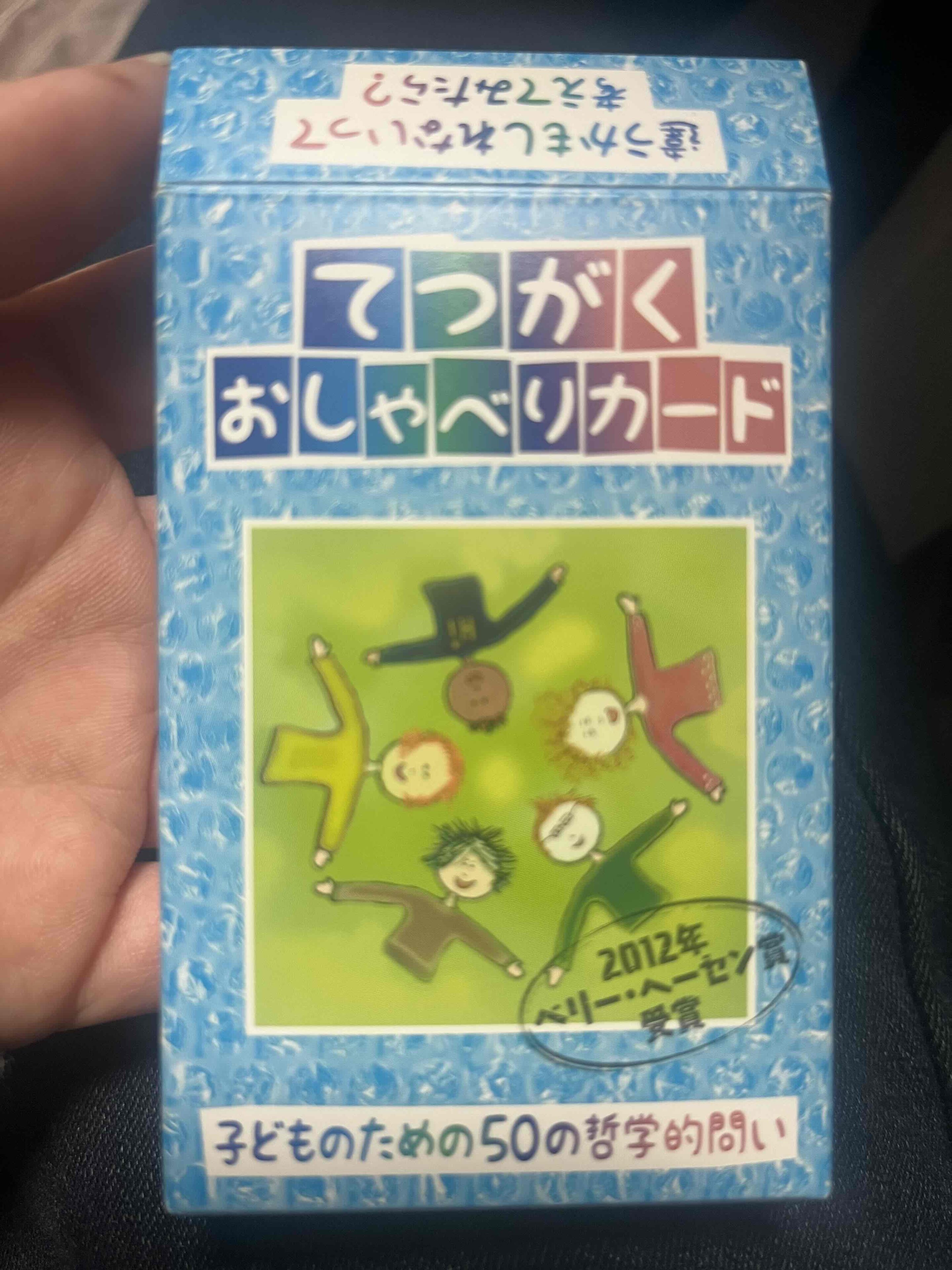 ※今回は「てつがくおしゃべりカード」を使ってやりました!哲学に対するお題が50問!対象年齢は6歳以上とあり、中には少し難しい問いもありました。
