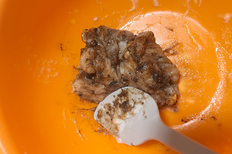 公式サイトの作り方では、おもちを丸めた後に砕いたブラックサンダーをまぶすのですが、硬いブラックサンダーを包丁で砕く工程が子どもには難しかったため、ブラックサンダーをもちに練り込んでアレンジしてみました。