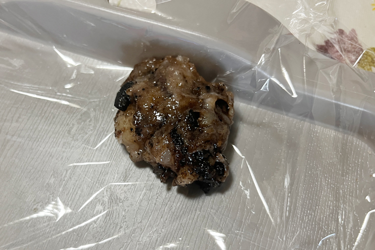 出来立てはとても柔らかく、ラップにくっついてしまいますが、冷やして固まるとお団子のようなもっちり食感に変わります。ラップを外してひと口食べてみると、もちっとしたお餅の中に、ブラックサンダーのココアクッキーとプレーンビスケットのザクザク食感がアクセントになっていて、とてもおいしかったです。ラップに包んだまま食べられるので手も汚れにくく、お餅とチョコの組み合わせは腹持ちもよく、ちょっと小腹が空いたときのおやつにもぴったりでした。