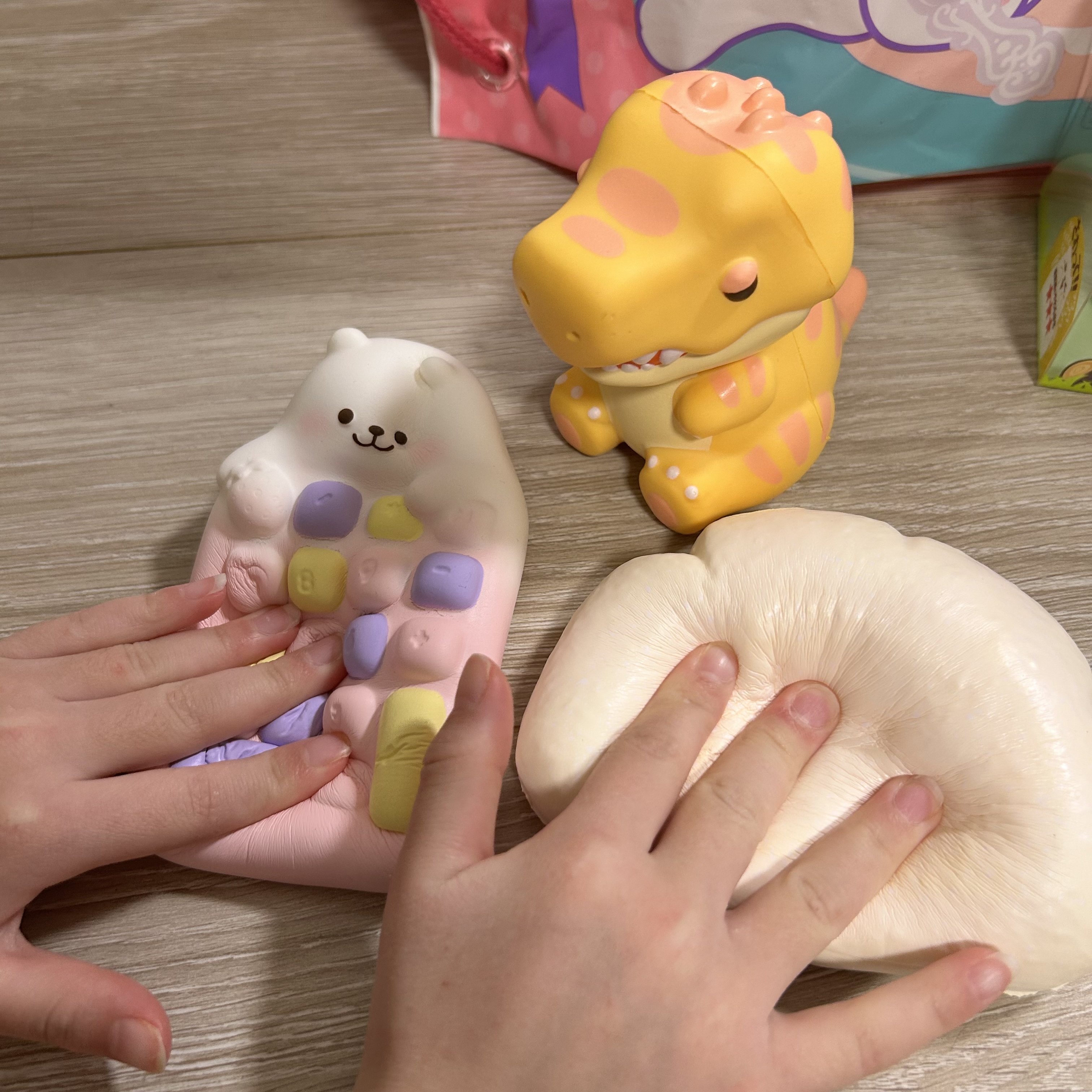 親子で癒しを求めて、スクイーズ握りしめてました。