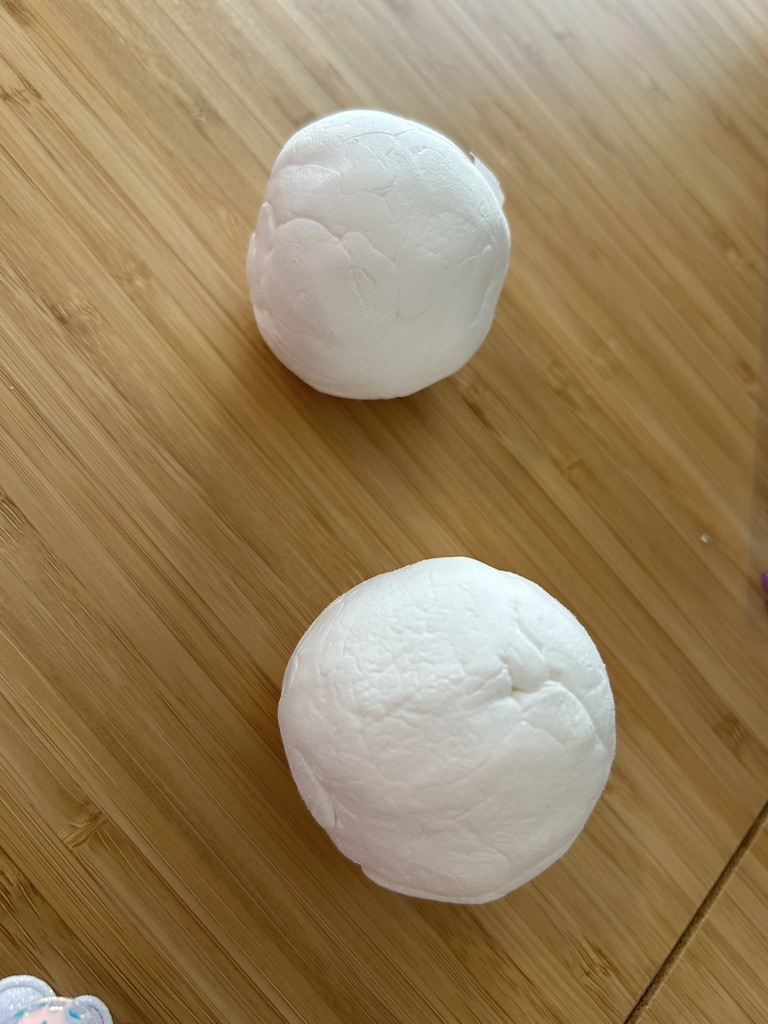 (3)紙粘土で球体を作って、好きな色に塗ります。