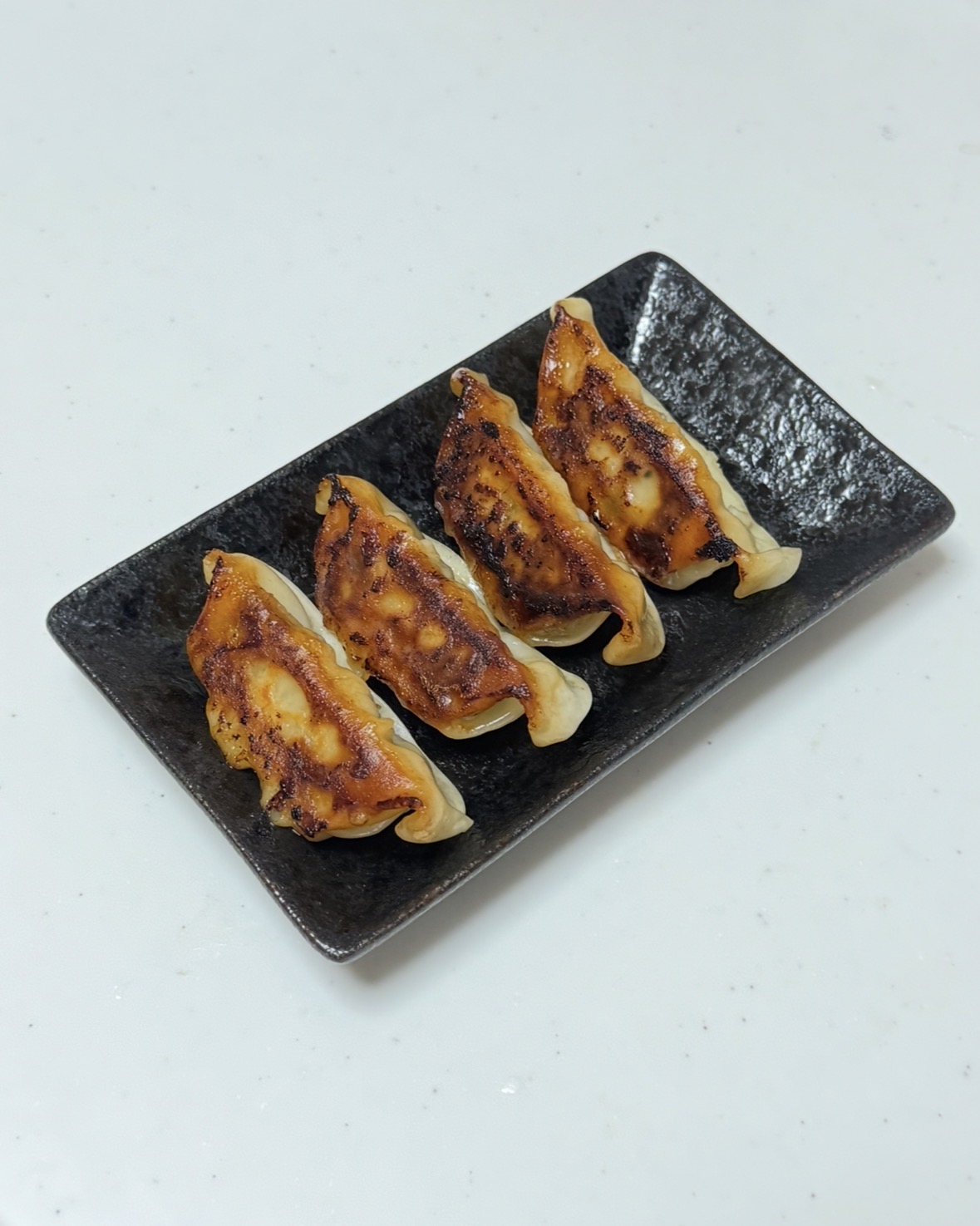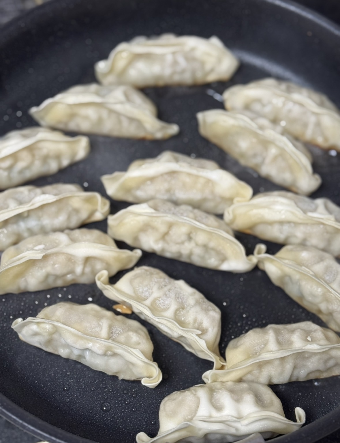 油をしいたフライパンにお好みで餃子を投入して強火で焼きます。