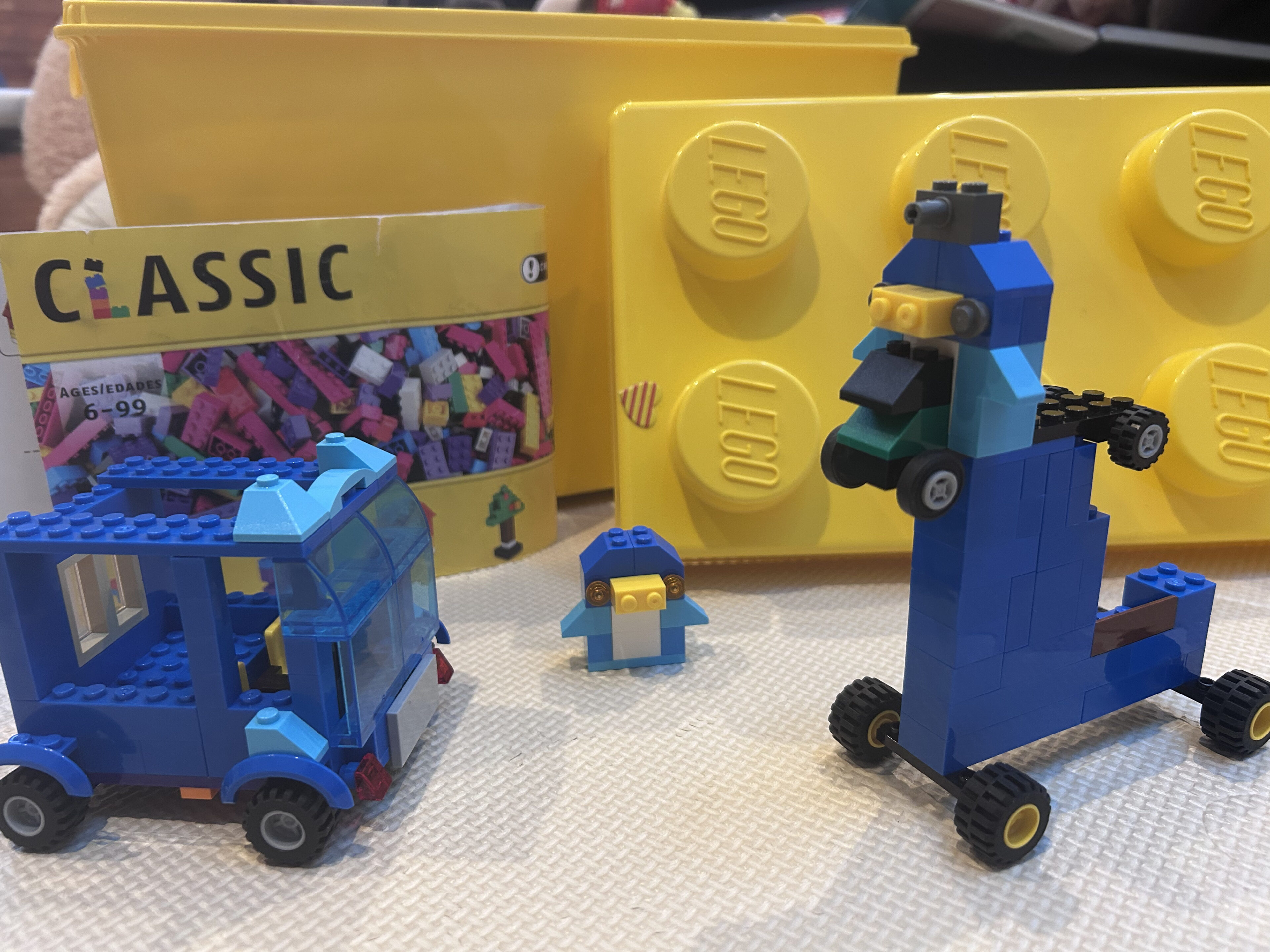 4歳を過ぎたあたりから急に世界が広がって、自分で「おうち」や「車」など、テーマのある作品を作るように。自分で考えて組み立てては壊し、また作るの繰り返し。説明書なしで遊べるので、想像力もかなり育っているなと感じました。買い足しできるのも、レゴならではの強みです。また、親も一緒に童心に戻って楽しめるのがレゴのいいところですね!