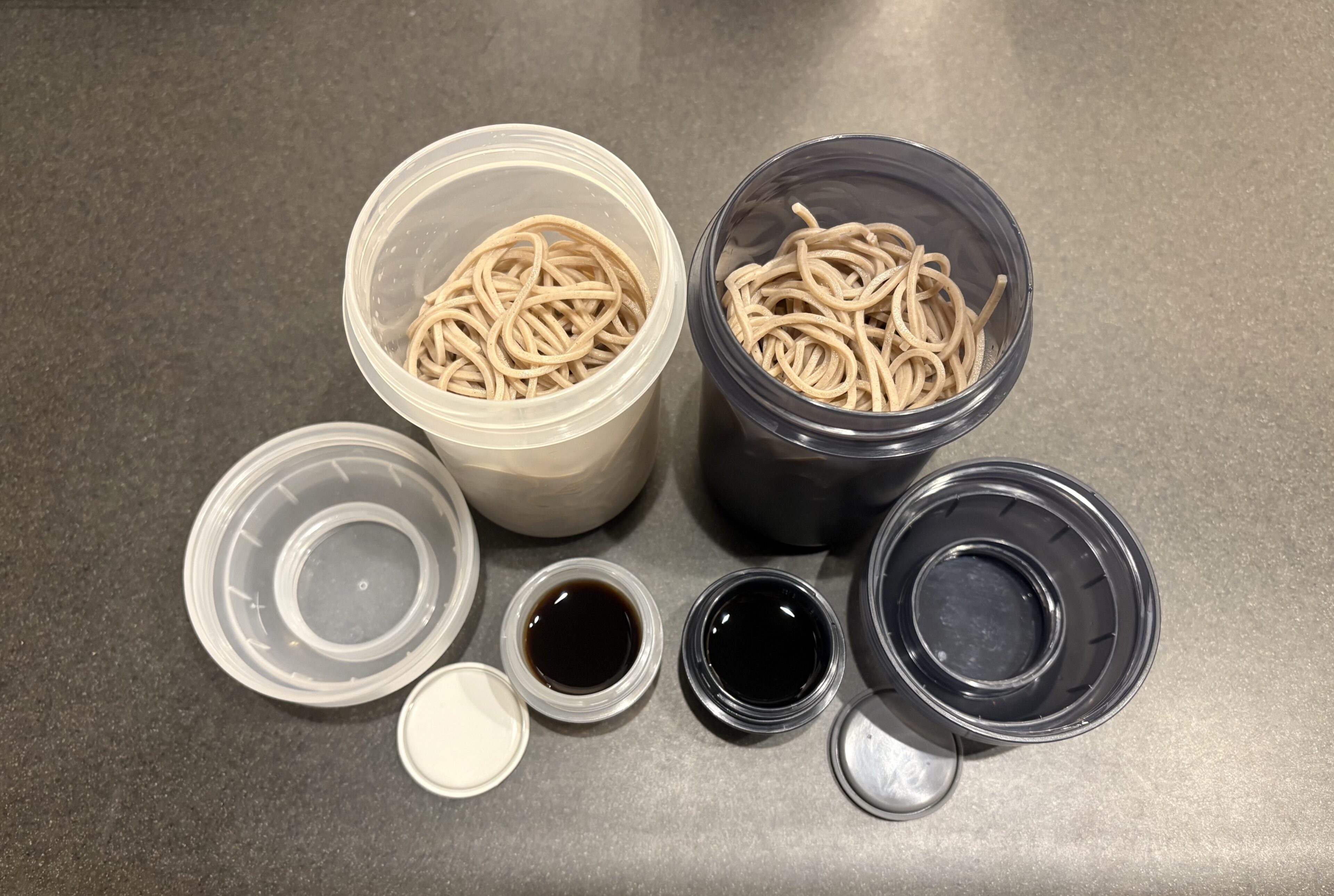 私たち夫婦はフル出社、どうやって蕎麦を持っていったかというと…無印良品の商品!