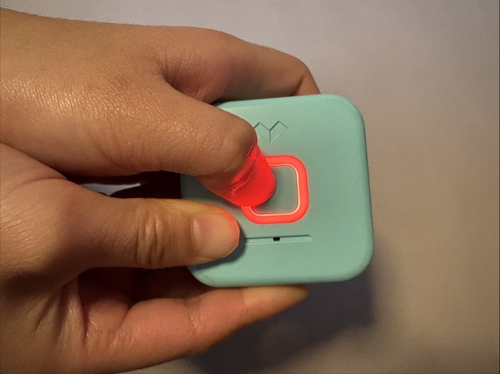 本体のボタンを長押しすると、ランプが赤く点灯します。