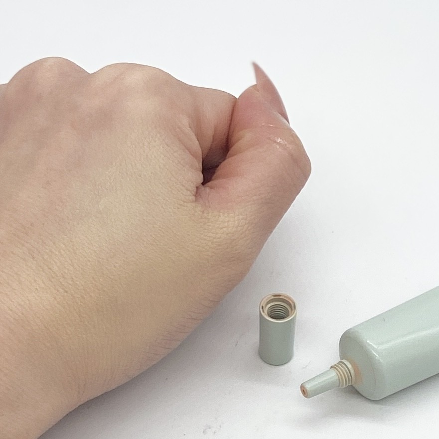実際に塗り広げてみると、スルスルとなめらかで心地よいテクスチャーです。普通のコンシーラーよりも、スキンケアの延長で使うことができる点が使いやすいと感じました。それでいて、ピタッと密着感もあるので、ズルズル崩れるような感じもなく、使いやすいです。