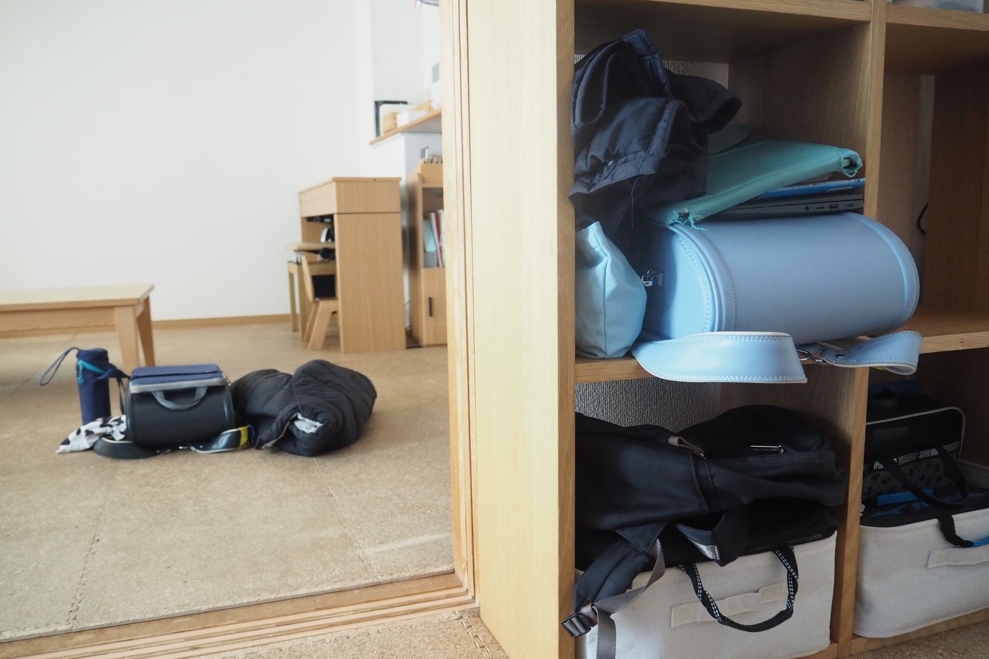 親が関わるのは、図工バッグや習字道具など、特別な持ち物があるときだけ。これらの準備は、まだ子どもが忘れてしまうことが多いため、週予定で予め確認しておき、ランドセルの脇に特別な持ち物も一緒に置くようにしています。