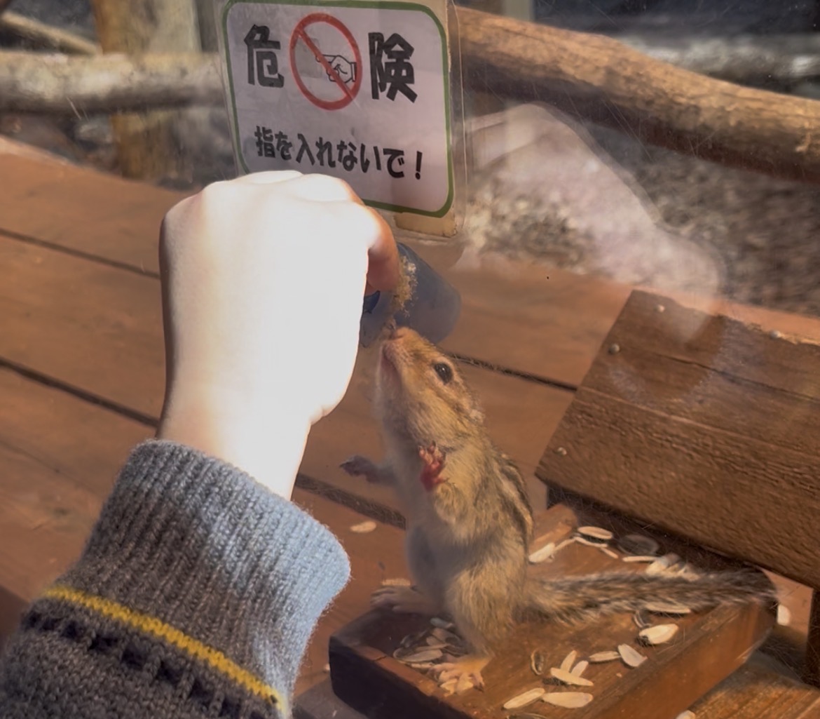 仕草がかわいい!リスへの餌やり体験