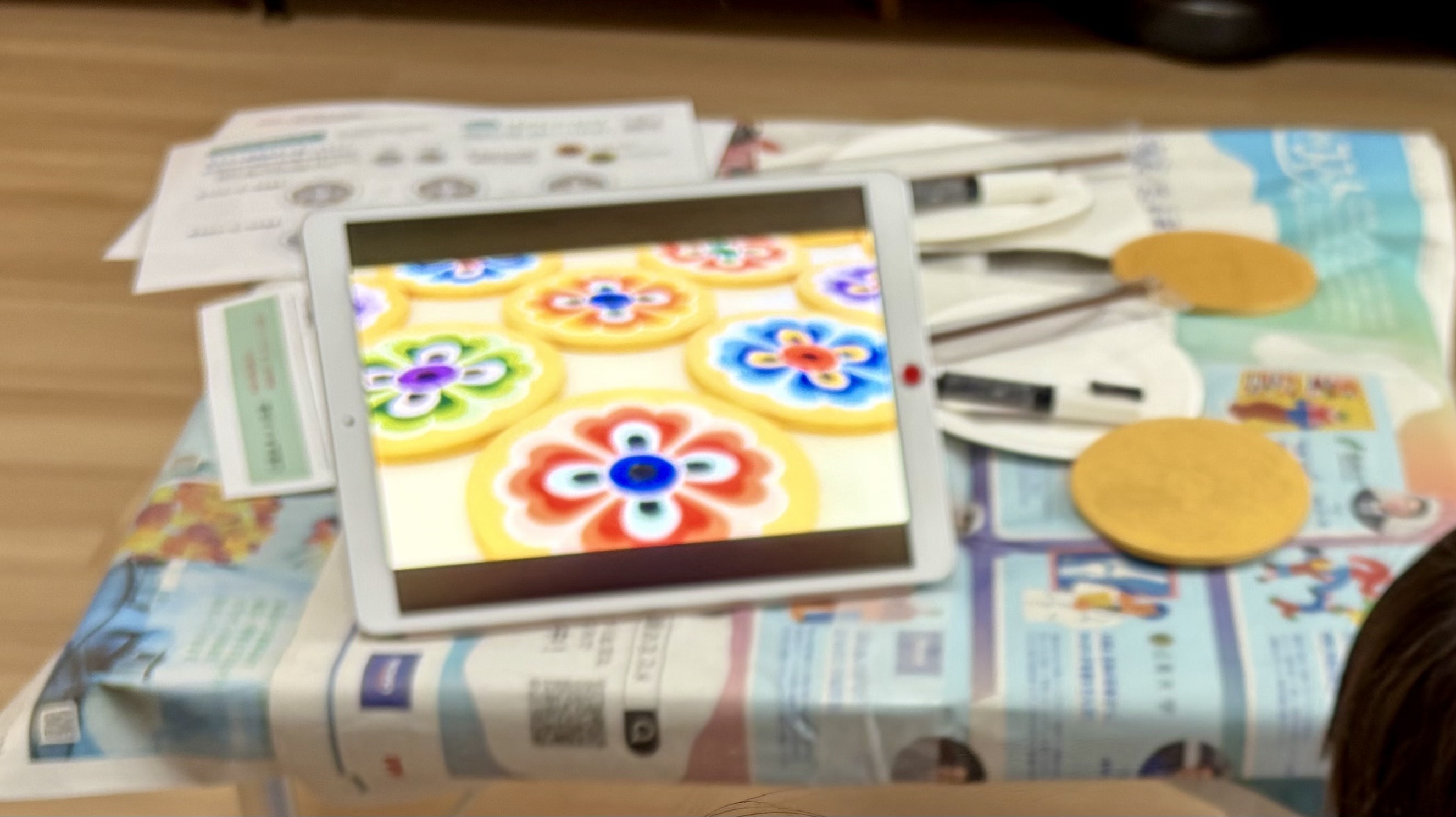 下絵に合わせて、絵の具を塗っていきます。途中で手順が分からなくなっても、説明書を見れば大丈夫。小1の娘は説明書を見ながら制作を進めていました。