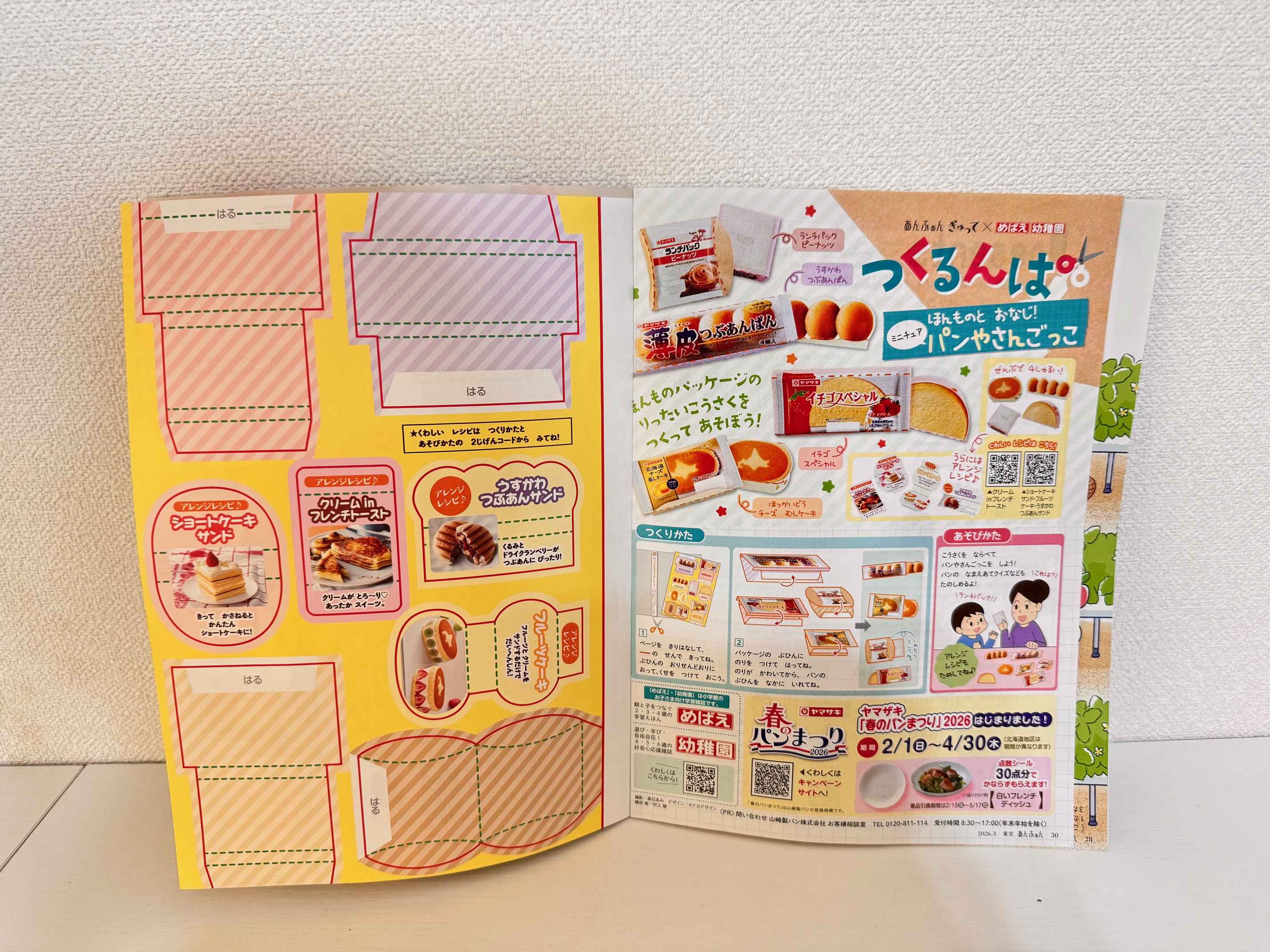 日本で一番読まれている子育て情報誌「あんふぁん」。紙面の最後の工作ページ「つくるんぱ」に今回登場したのは、「ほんものとおなじ!ミニチュアパンやさんごっこ」でした。そこに載っていた山崎製パンのアレンジレシピはどれも美味しそうなものばかり。早速作ってみることにしました。