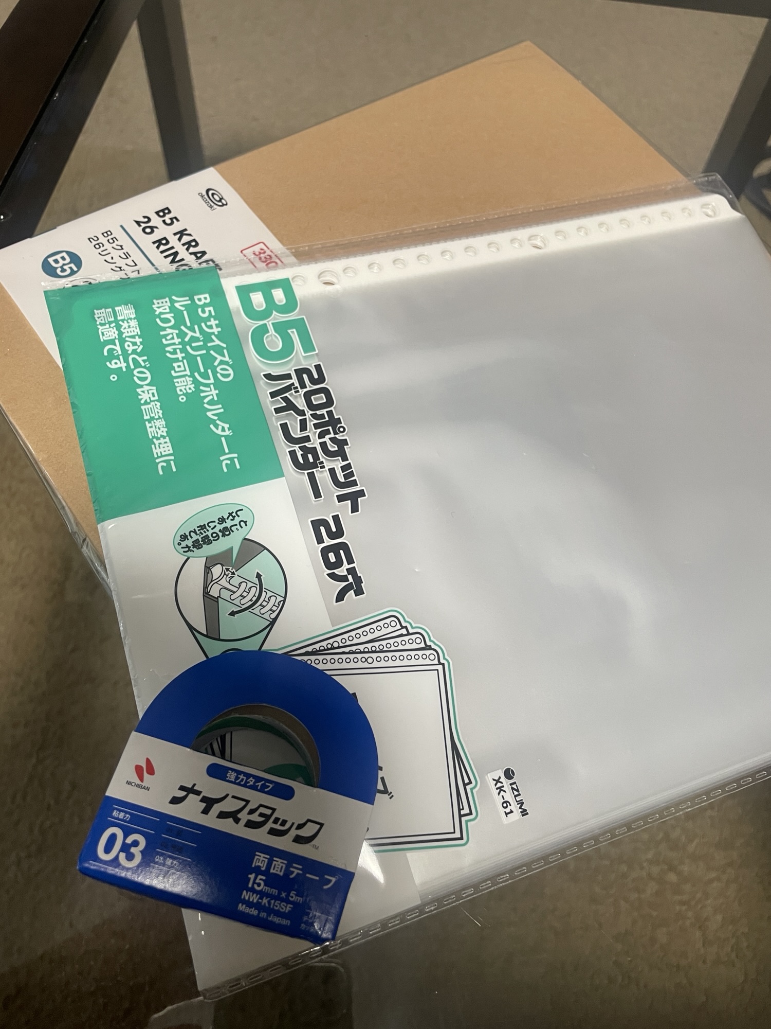 買い忘れてはいけないのが、中に入れるクリアポケットと両面テープ。この2つは忘れずに買っておくのがおすすめです。ちなみに、3人分作ったら両面テープは使い切ってしまいました。
