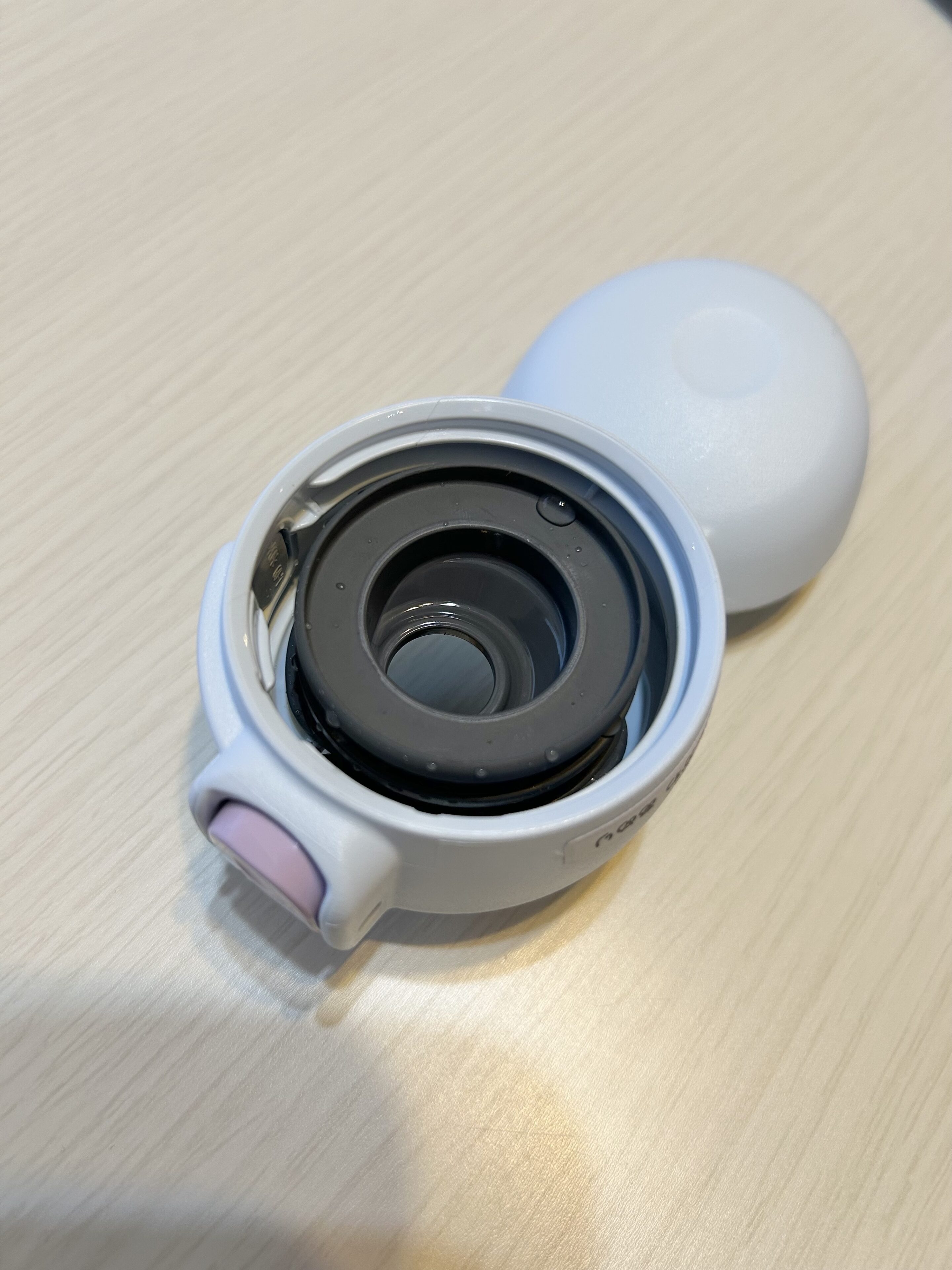 この「ワンタッチタイプ シームレスせん」は、せんとパッキンが一体化しているので分解しなくても洗うことができます。パッキンのつけ忘れによる水漏れやなくす心配もなくなり、お手入れがとても簡単に。毎日持っていくものなので、お手入れがしやすく漏れる心配もないのは嬉しいポイント。