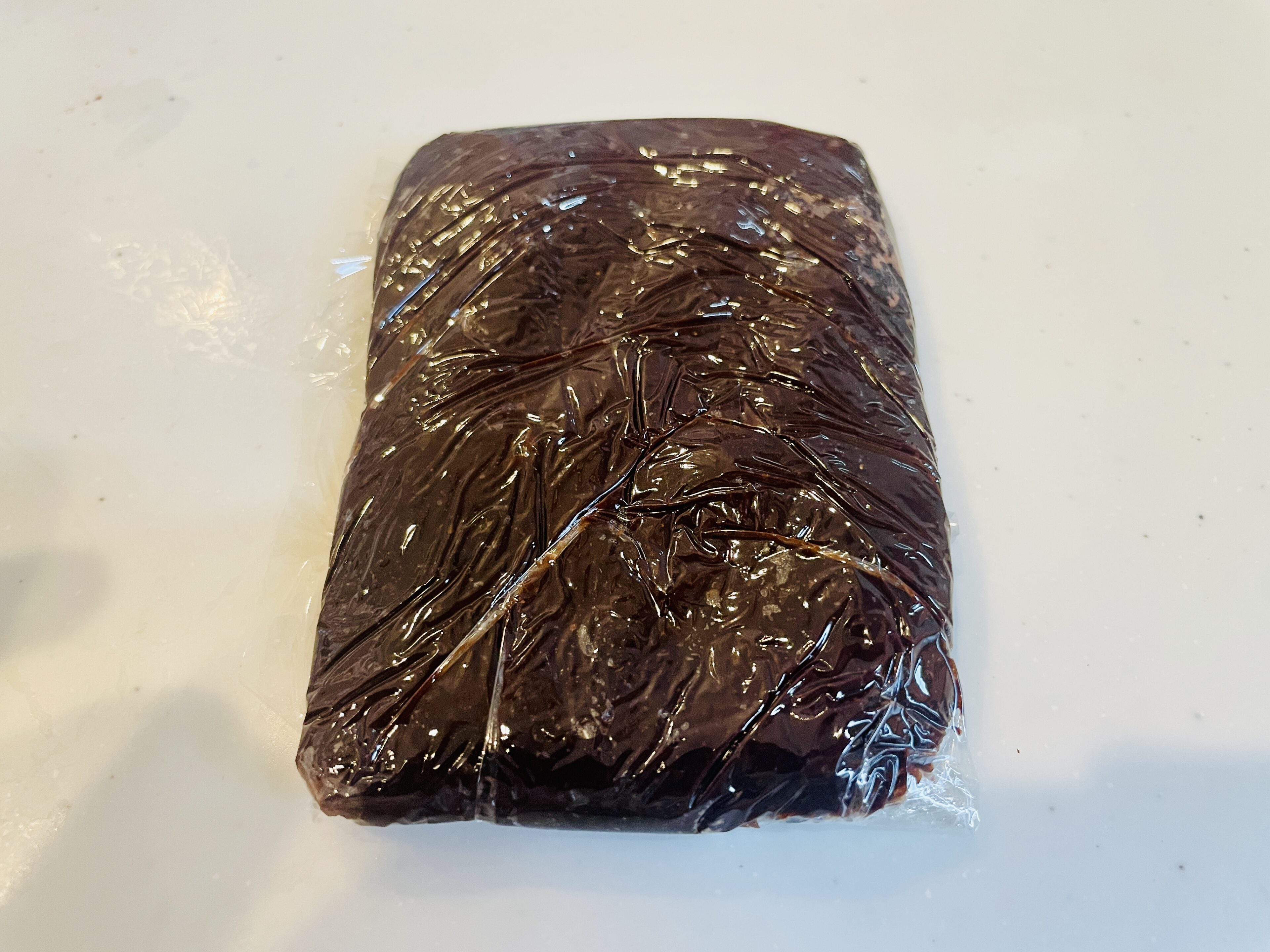 (4)なめらかになったらラップに包み、四角く整えて冷凍庫で30分冷やす