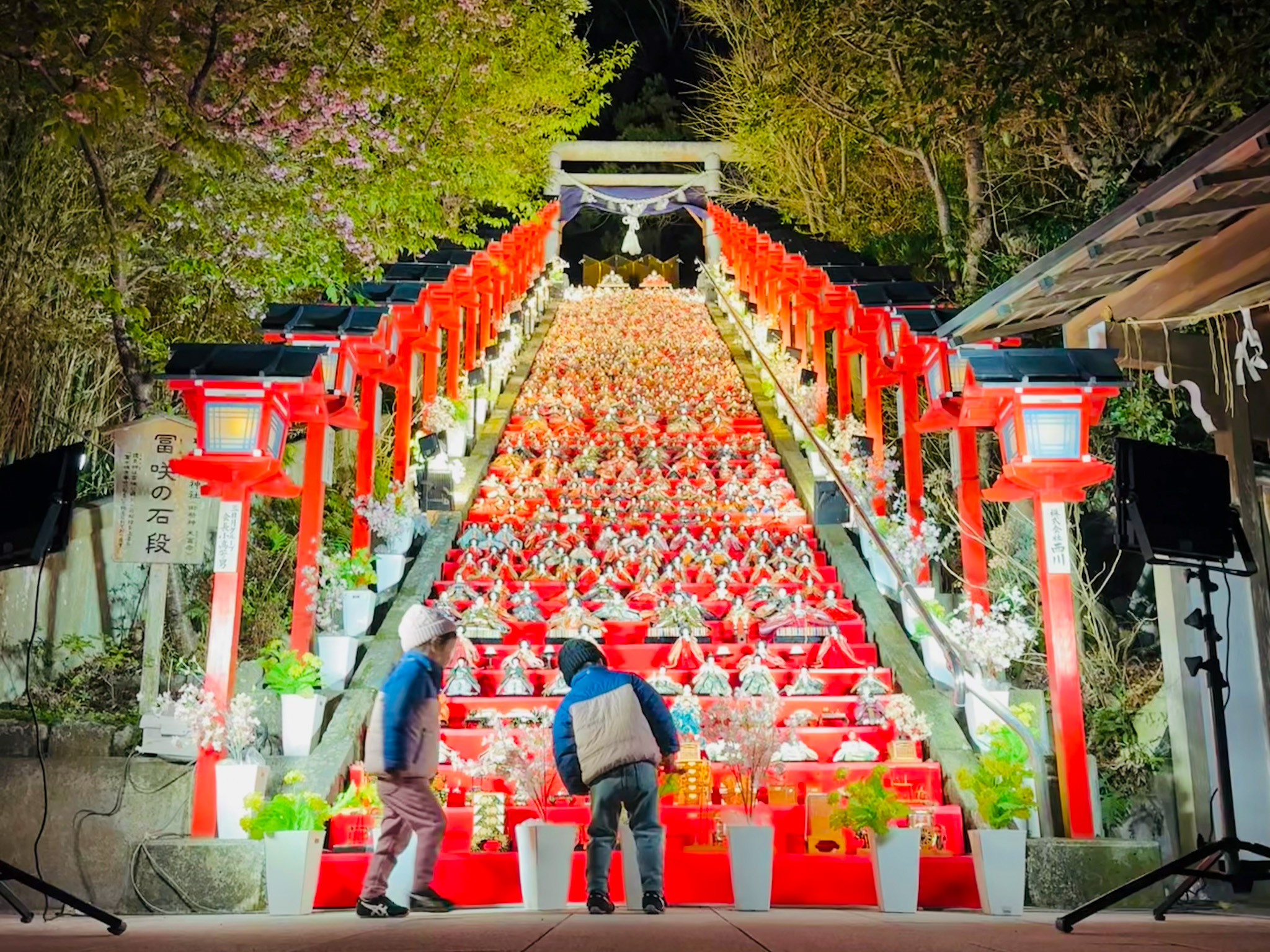 超混雑する土日祝日に比べて、平日の火曜・水曜・木曜は比較的ゆっくりと回れます。特に平日の朝一の時間帯は並ぶことなく、自由に写真撮影も可能です。早めに遠見岬神社へ足を運ぶと、手作業で雛人形を並べている貴重なシーンも見ることができます。そのチームワークは圧巻ですよ。