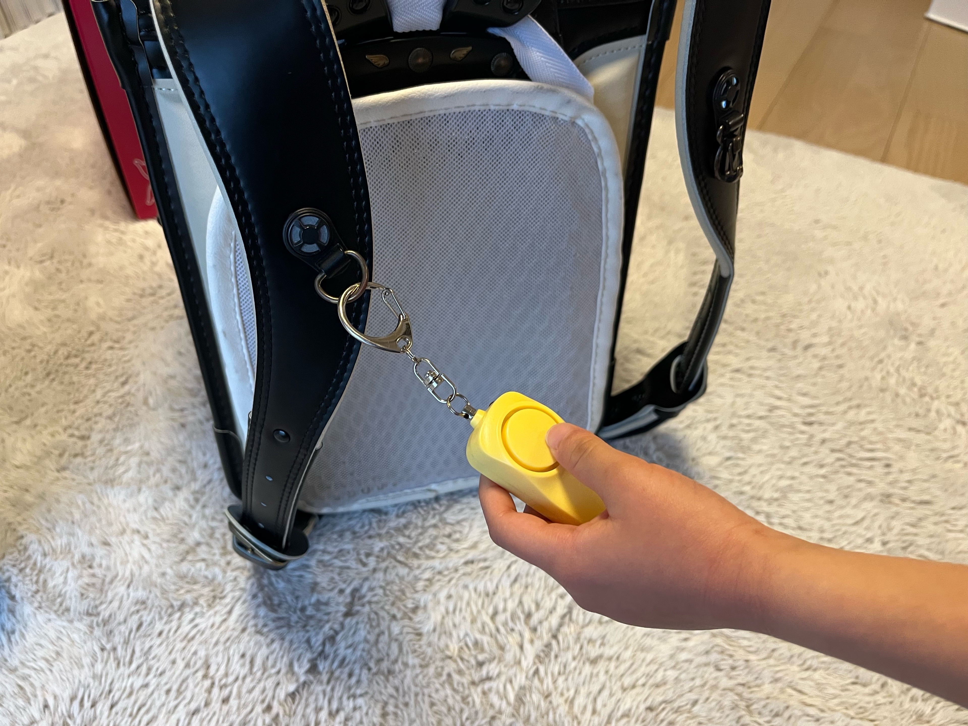 →「(肩)紐のところにフックがあるから、防犯ブザーを付けられる。」