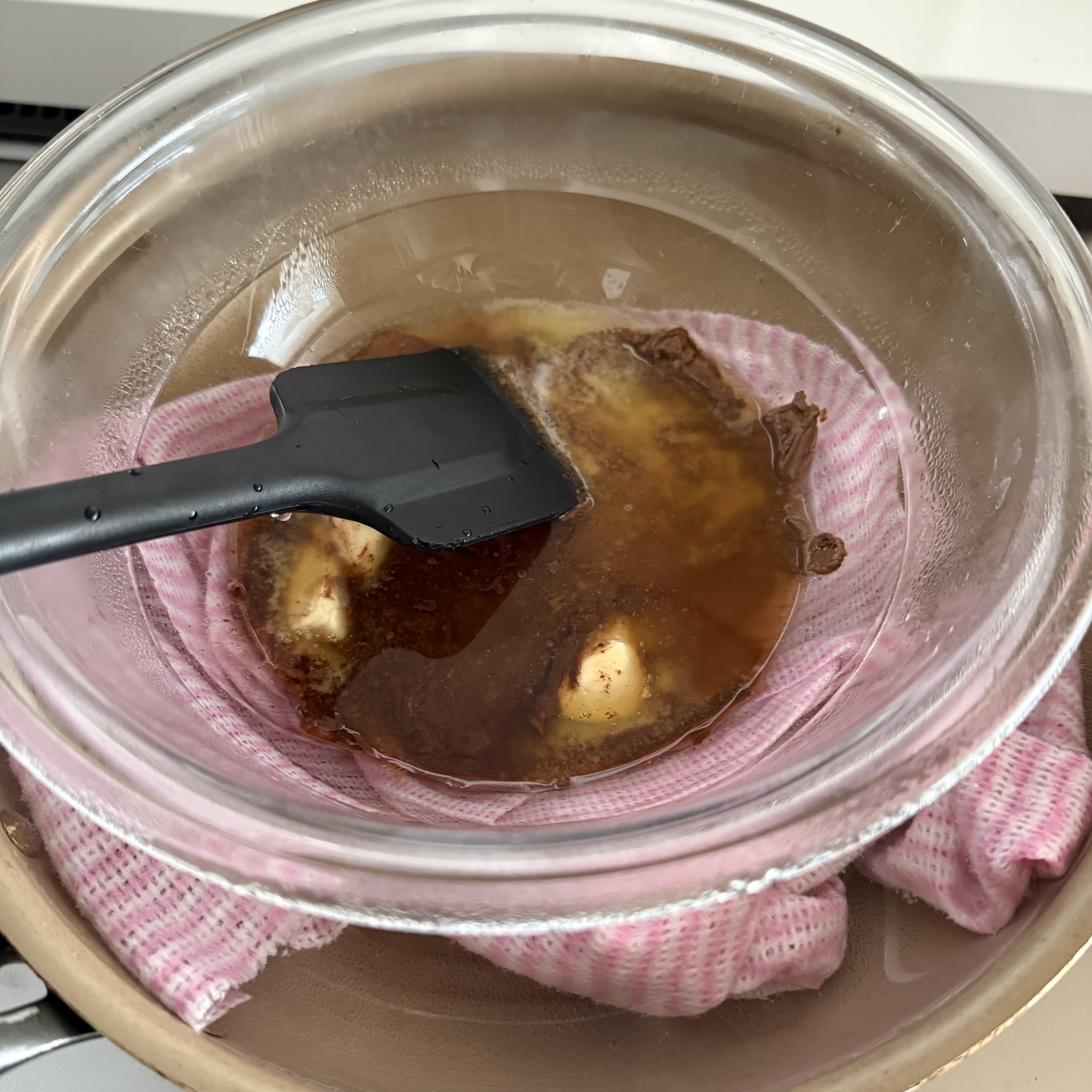 直火はNG。必ず湯せんでゆっくり溶かします。