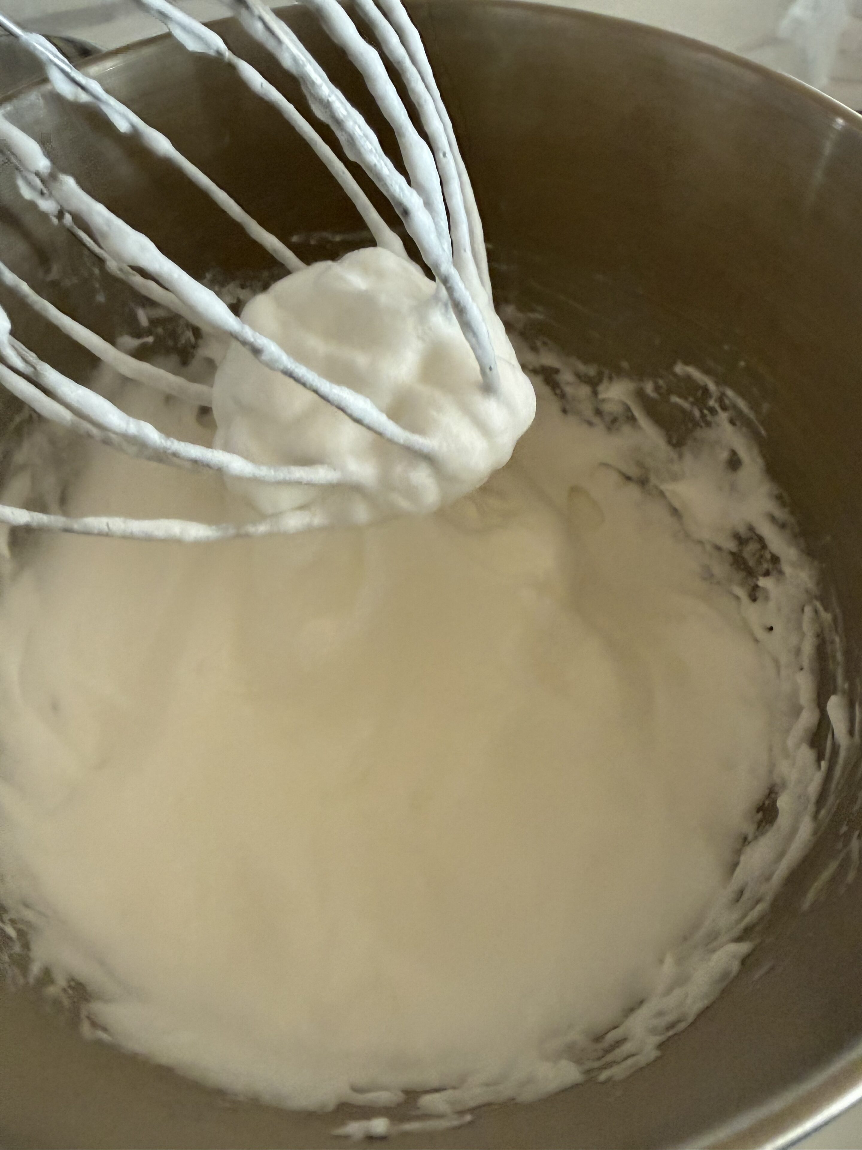 セレといって、ホイッパーで泡をきめ細かく整える作業をします。それだけでメレンゲの質が全然違います。