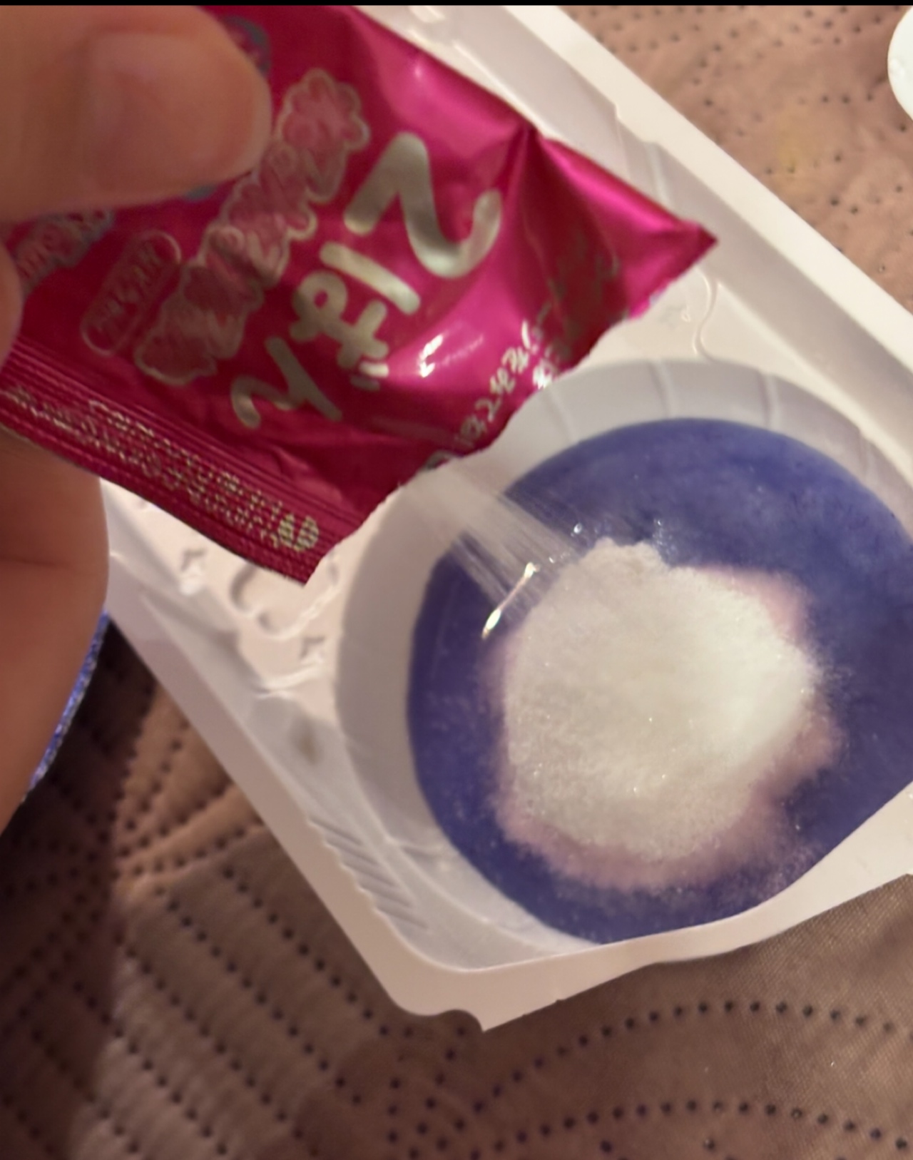 本当の作り方は、まず1番の粉をトレーに入れて、その後お水を入れてよく混ぜる。
