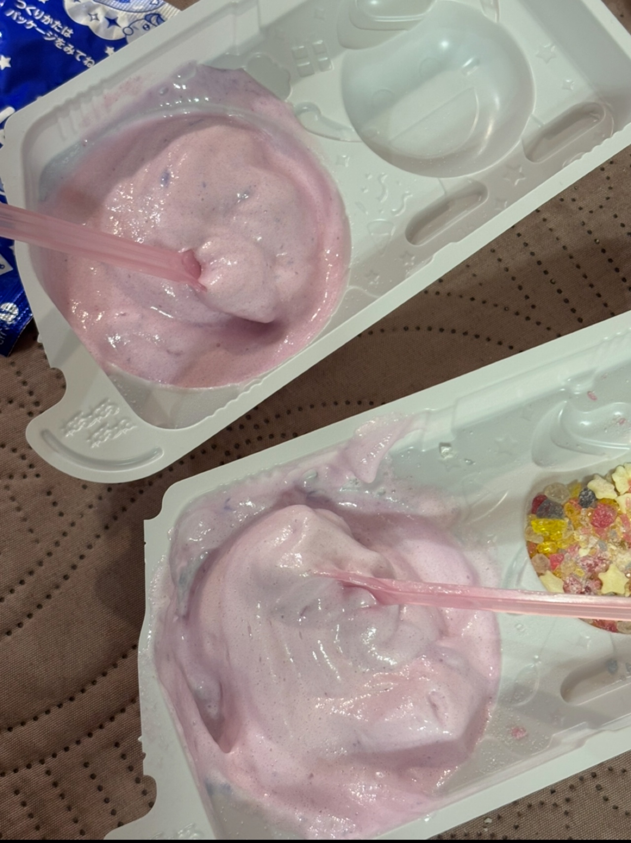 手順通りに作った、ねるねるねるねと並べて比べてみました↓