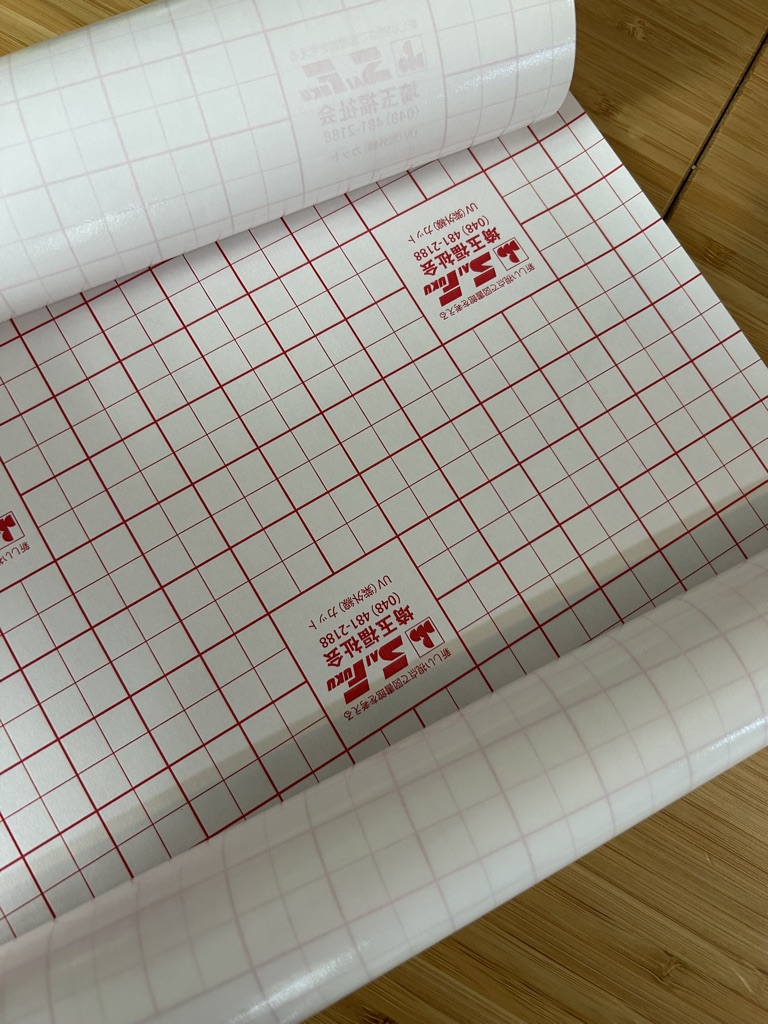 ラップのようにロールになっているので、使う分だけ初めにカットしておきます。剥離紙にガイドラインが付いているので便利です。