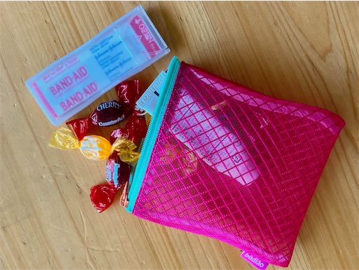 まず見直したのはポーチのサイズです。なんとなく安心で大きめを使っていましたが、思いきって小さなポーチに替えました。絆創膏や衛生用品も、“多めに”ではなく「今日使う可能性がある分だけ」。それだけでバッグの中に余白が生まれ、探しものが減り、取り出しもスムーズに。ママのバッグが重くなる原因は、必要なものより「余分な量」であることが多いと気づきました。