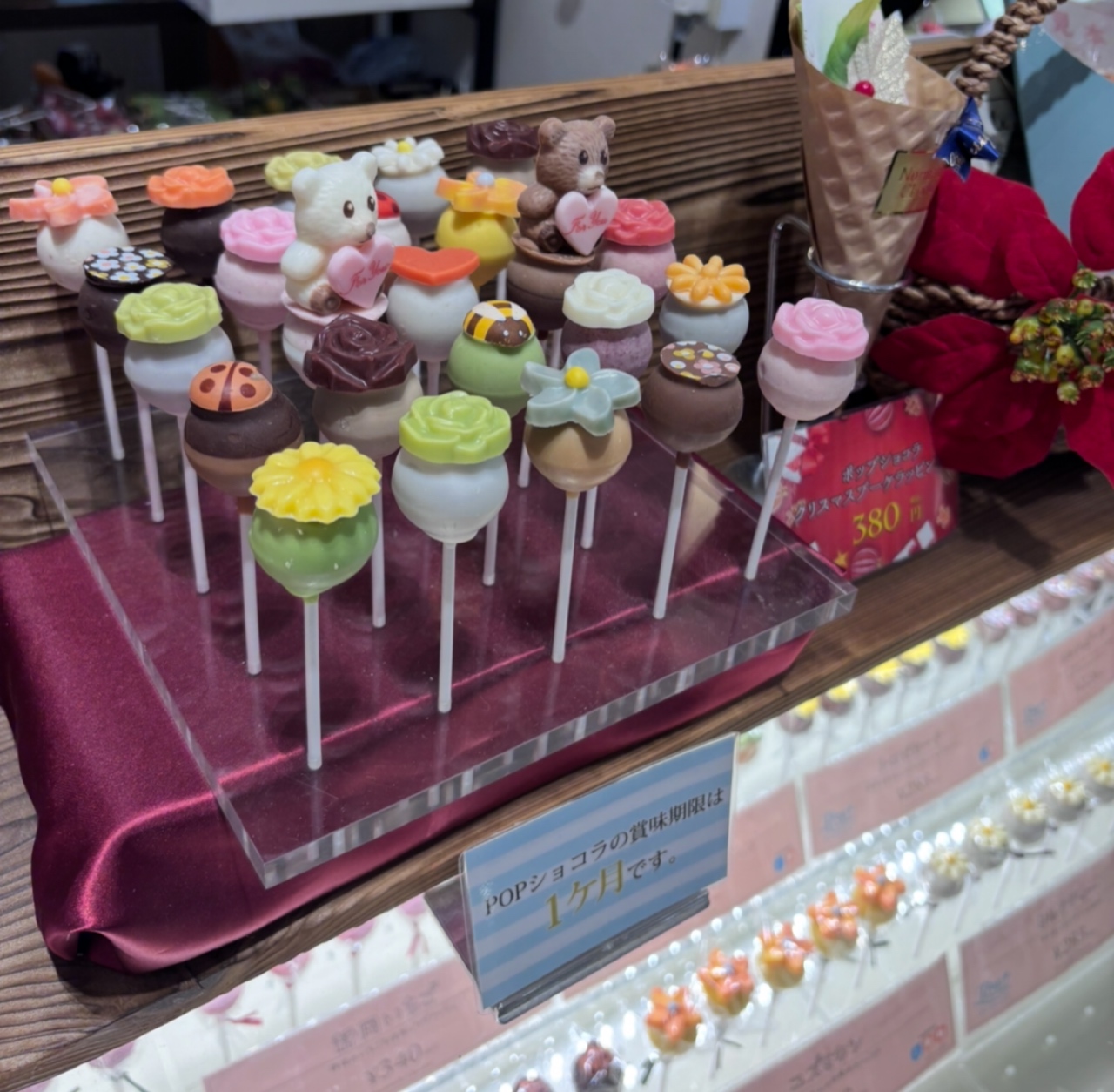 ここに売っている、棒付きのポップチョコレートが可愛くて美味しい!