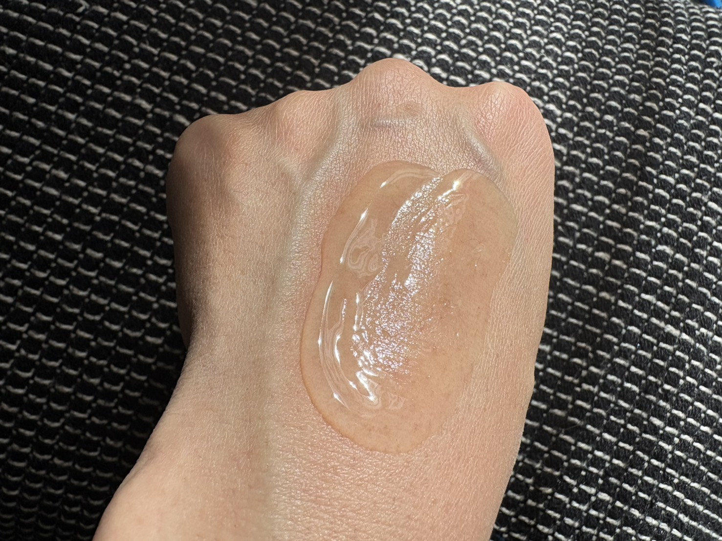 顔にのばすと、スーッと広がって肌にピタッと密着する感じがあります。