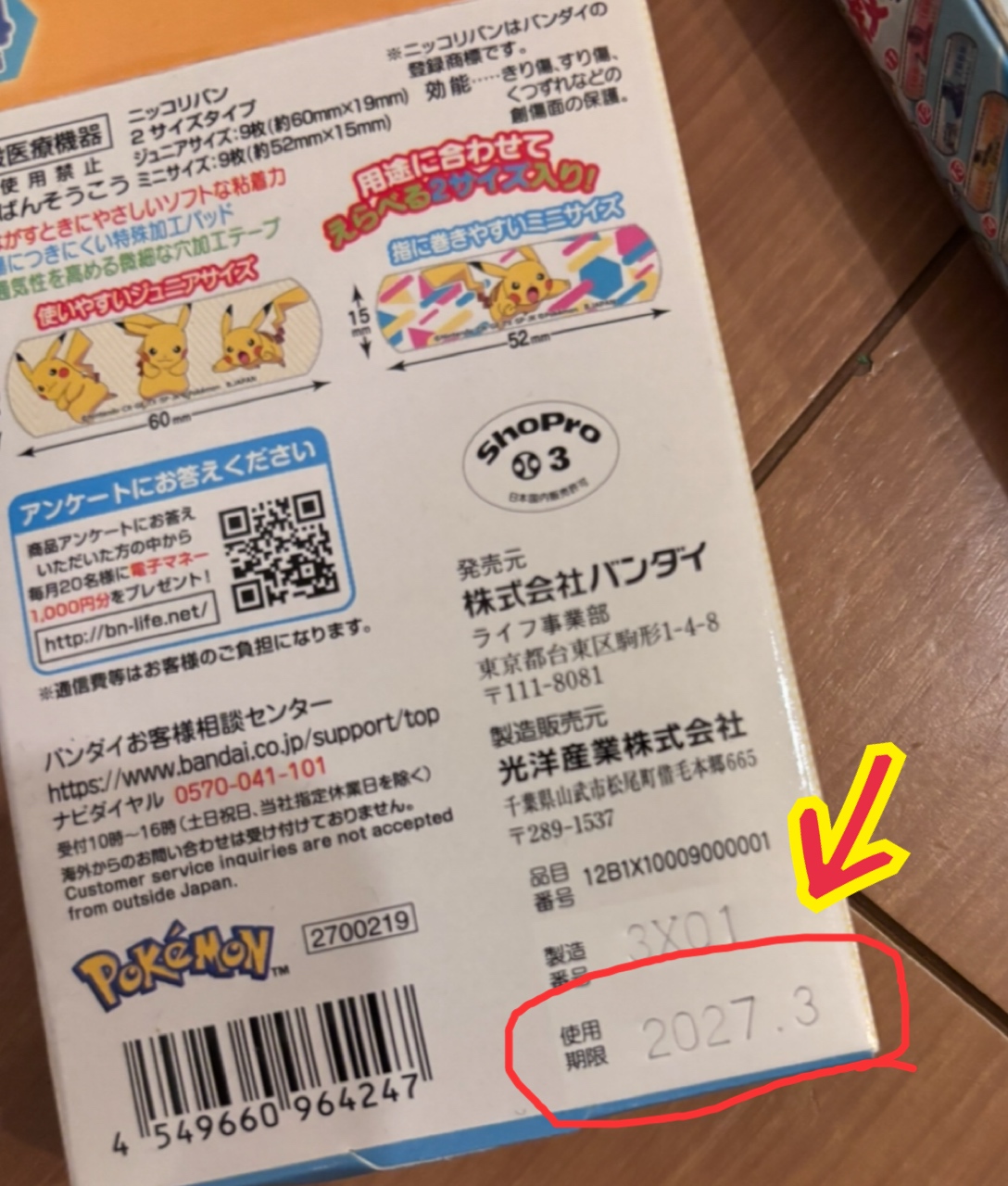 今回使った絆創膏の使用期限も確認してみると、、、