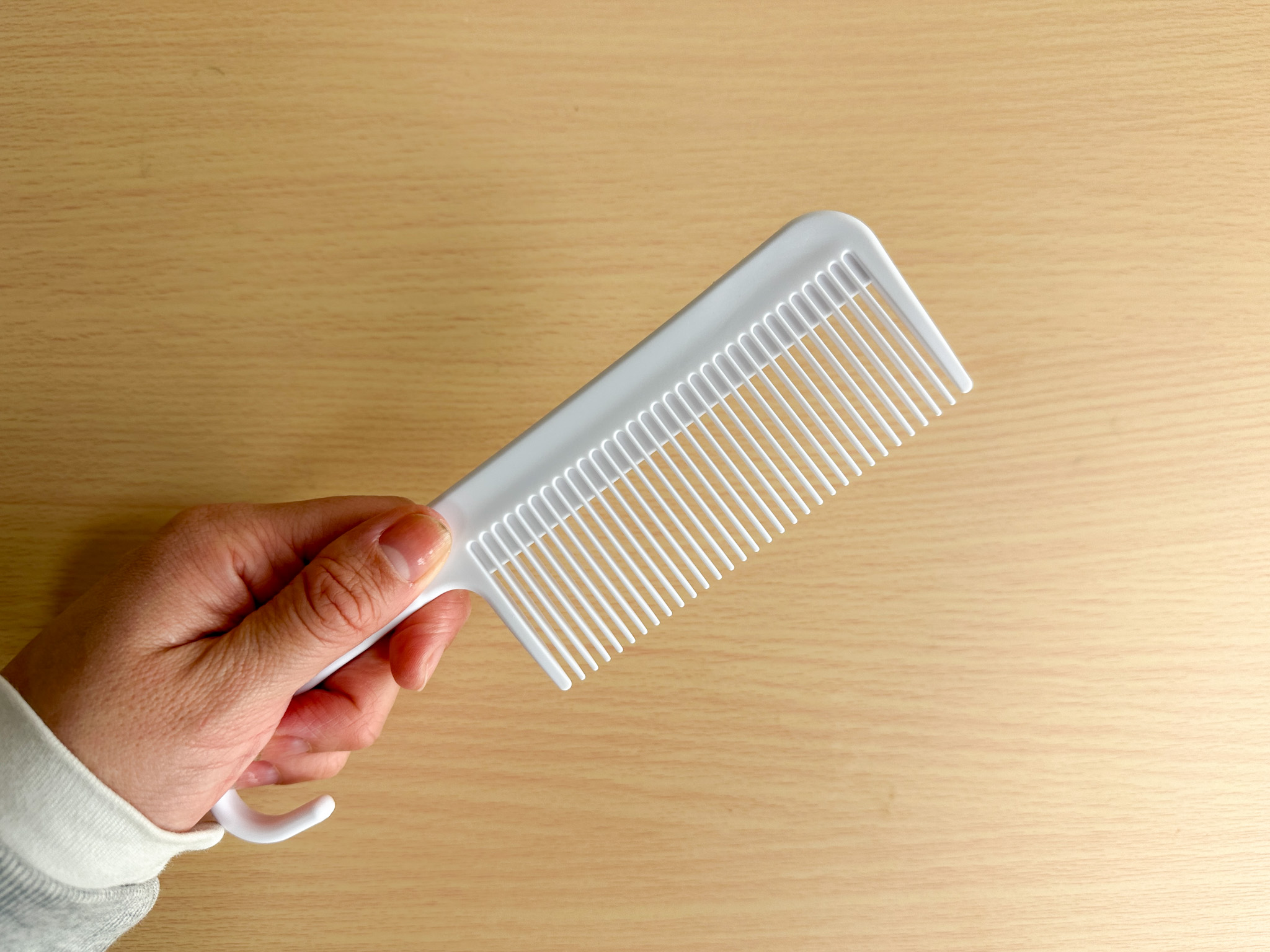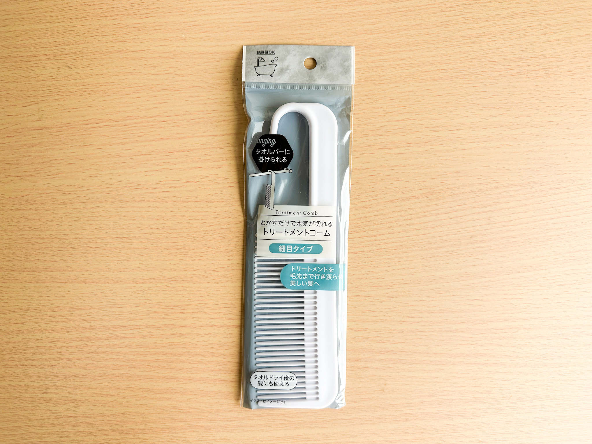 そこで頼ってみたのが「トリートメントコーム(細目タイプ)」110円(税込)。使い方はとても簡単で、コンディショナーやトリートメント後に毛先までとかすだけ。均一になじむので、猫っ毛ロングでも絡まりにくく感じました。正直、あまり期待はしていませんでしたが、実際に使用してみるとわが家でははっきりとした変化がありました。