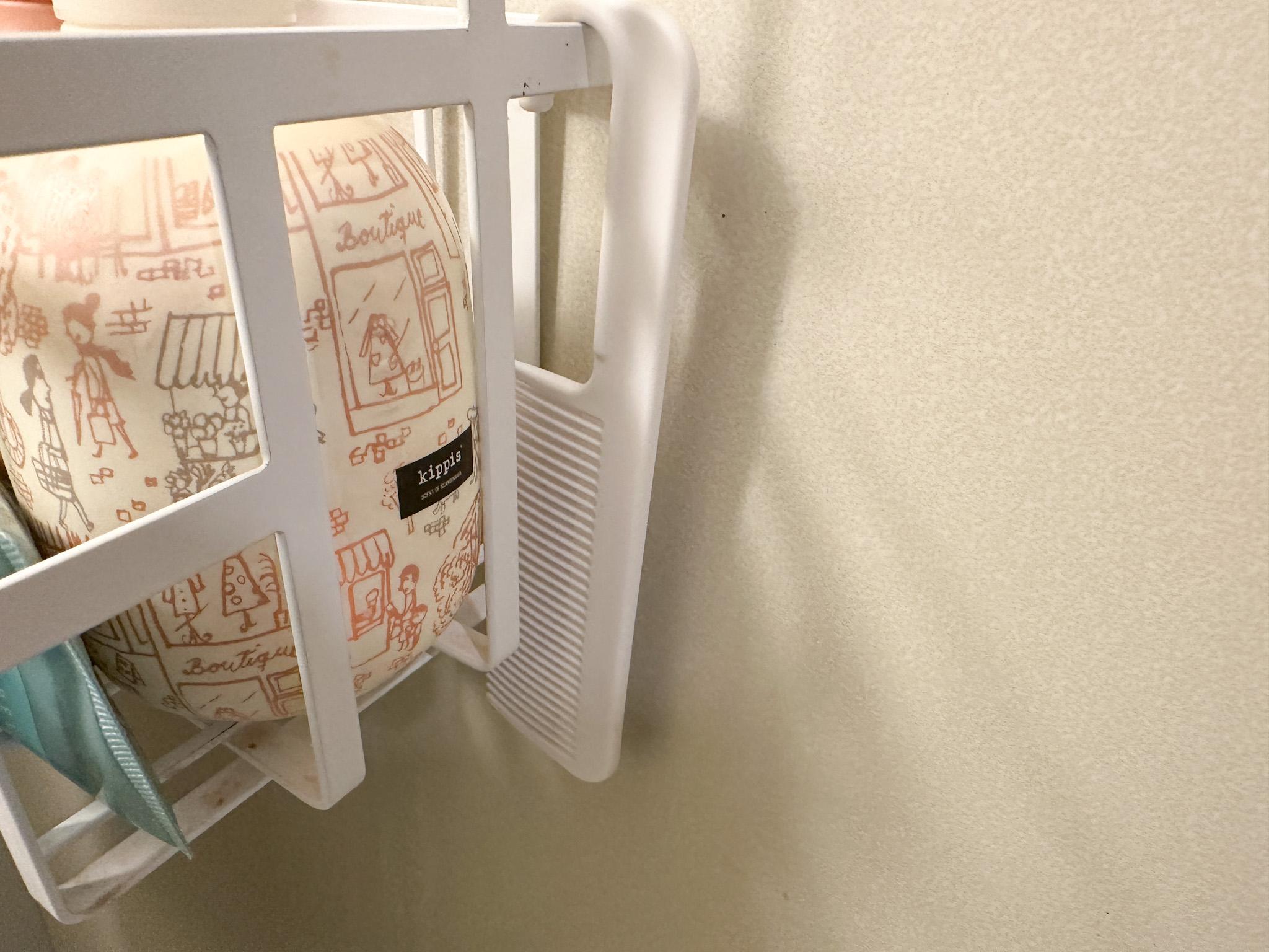 追加工程なしで使え、お風呂場のタオルバーに掛けられます。水切れが良く衛生的なのも嬉しいポイントです。上部がフック状になっているので、そのまま引っ掛け収納できます。床に置かない=ぬめらない。地味ですが、毎日使うものだからこそ大事ですよね。正直、もう少し目が細かいとさらに良いなと思いました。また、きちんと目の部分を洗わないと滑りが残るので、使用後はしっかりすすぐのがおすすめです。