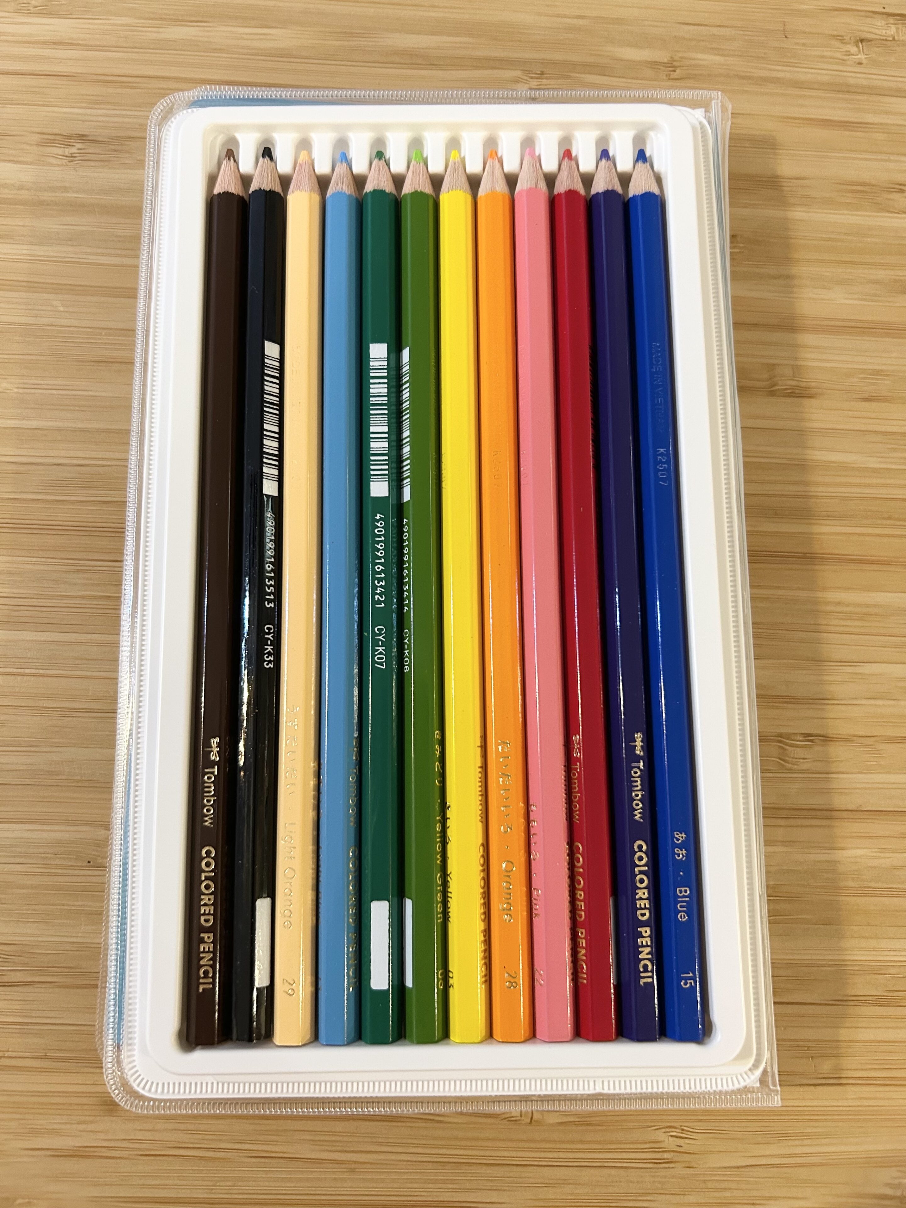 「缶入りだと落としたときに大きな音がする」「机を広く使いたい」という声にこたえて開発された12色入りの色鉛筆です。