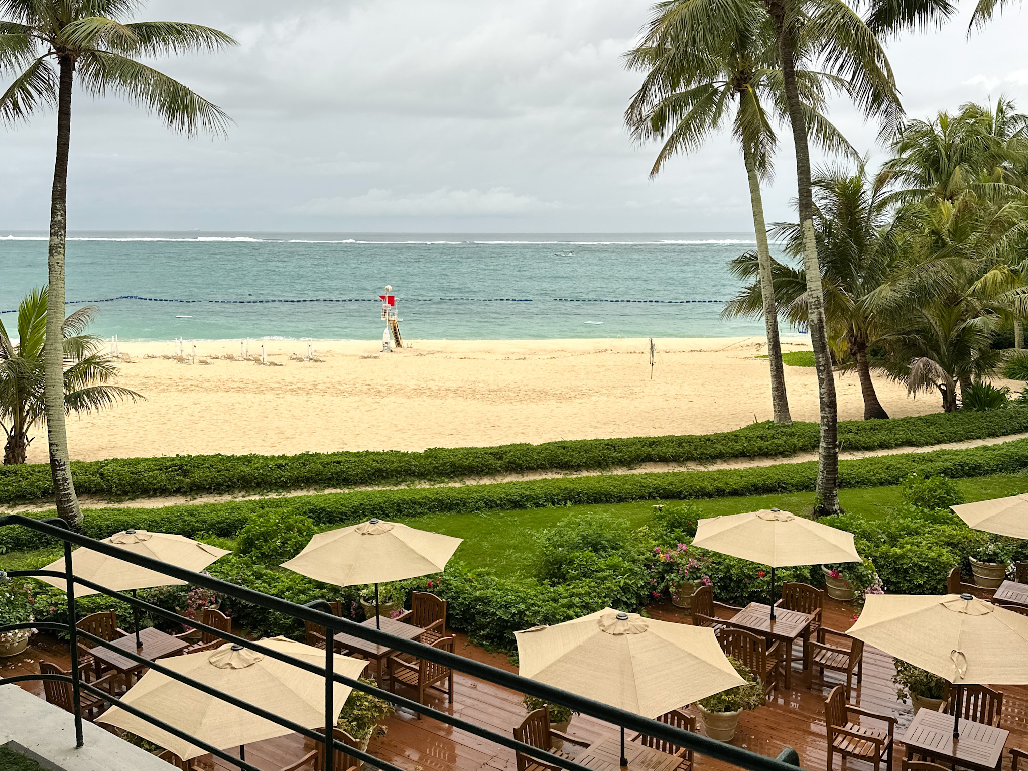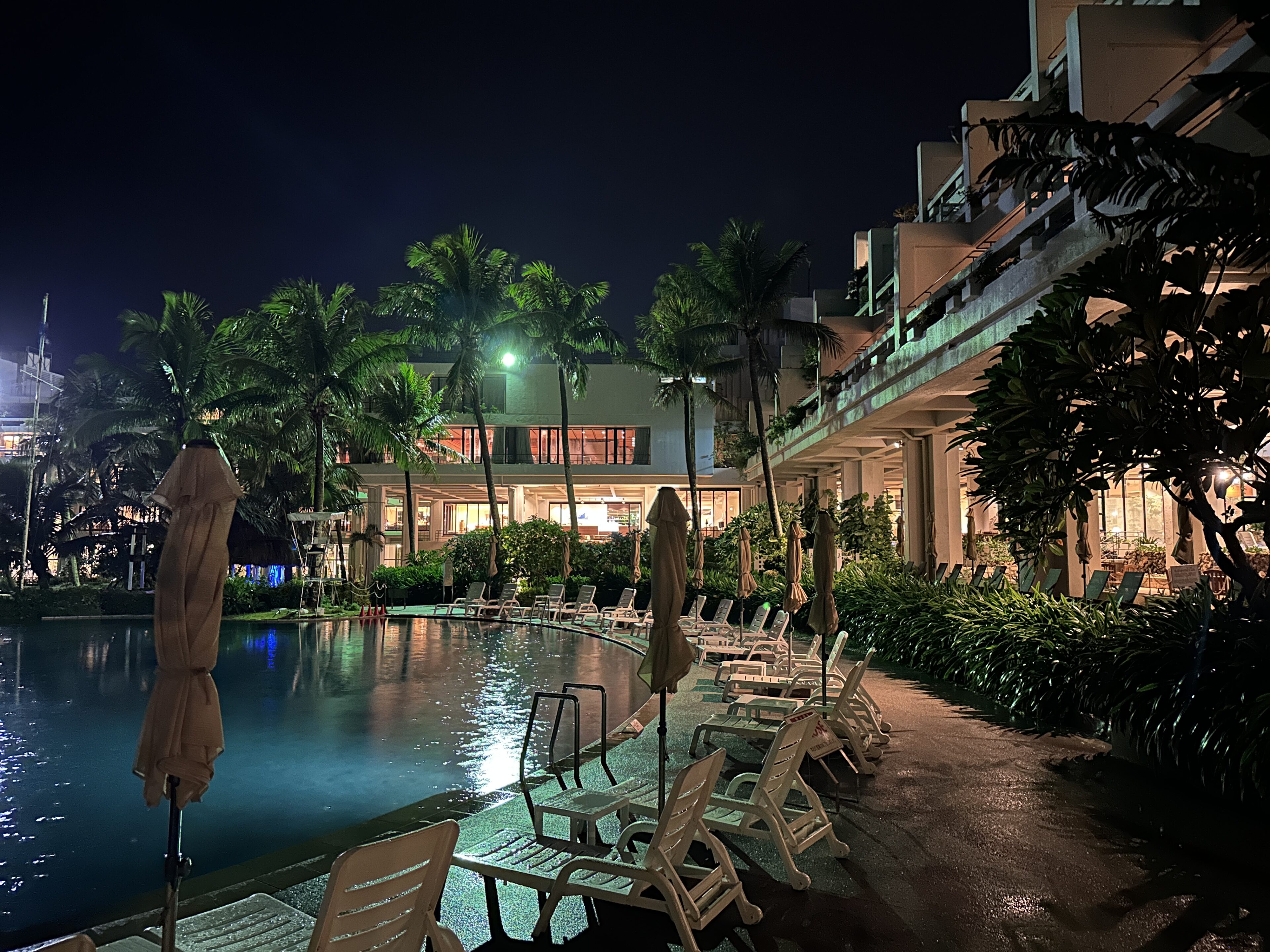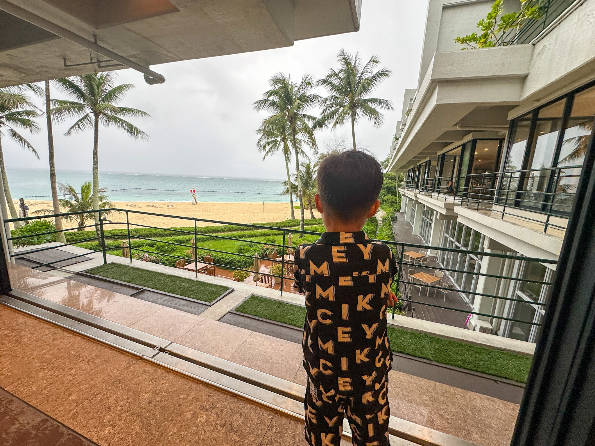 半屋内プールがあるのは、子連れにとって神でした。天候に左右されず楽しめるのは本当にありがたい。双子はひたすら泳ぎ、夜まで楽しんでいました。天候が悪い外の海は灰色でも、ホテルの中はずっとリゾート。「雨だからこそ、ホテルを満喫できたのかもしれない」と思えました。
