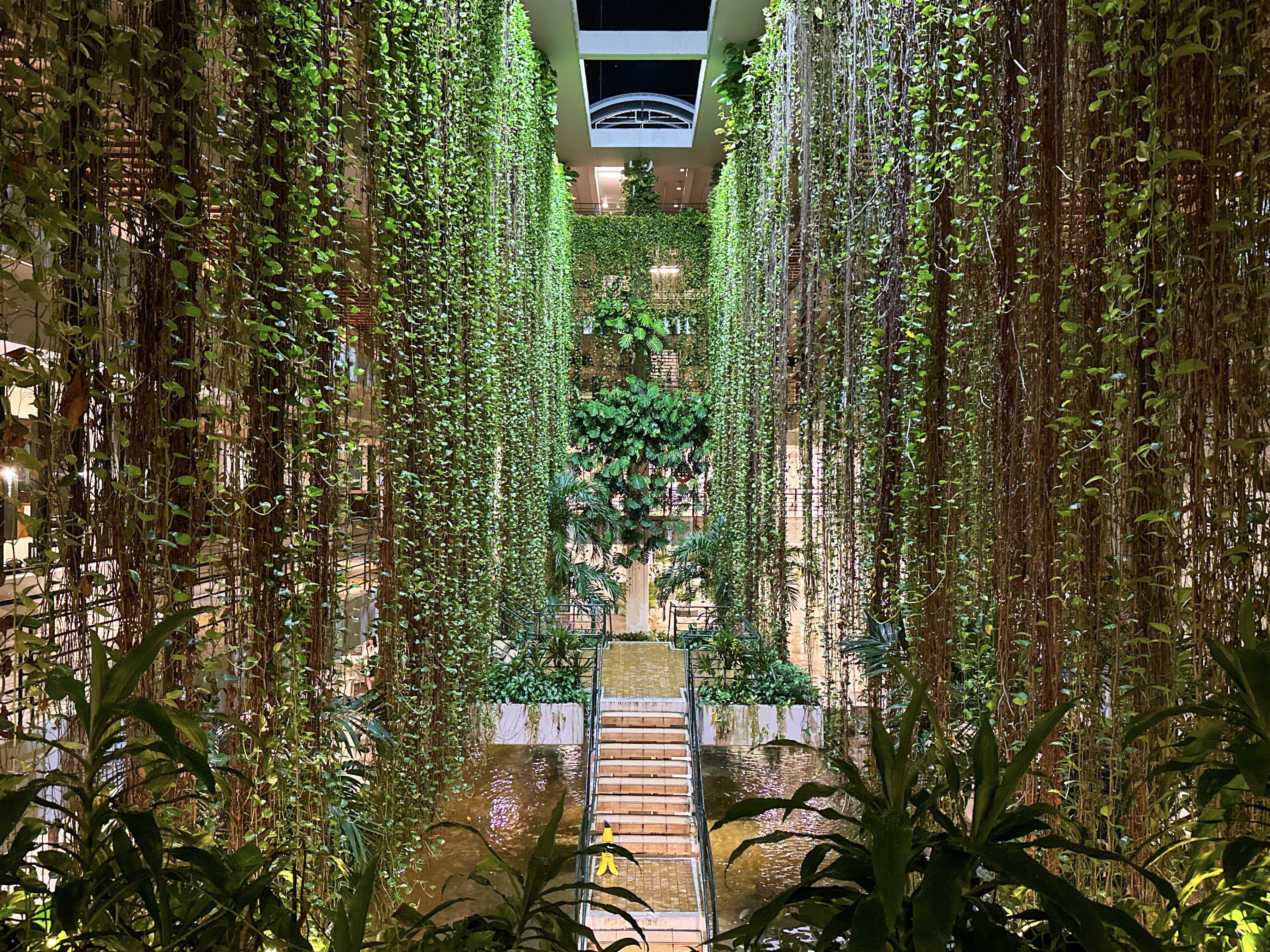 館内は南国植物に囲まれた大階段や回廊が続き、どこを切り取っても絵になる空間ばかり。スマホのシャッターが止まりません。名前に「ミュージアム」と入っているだけあり、壁に飾られたアートや館内ショップのセレクトもセンス抜群。ただの「泊まる場所」ではなく、滞在そのものが体験になるホテルでした。