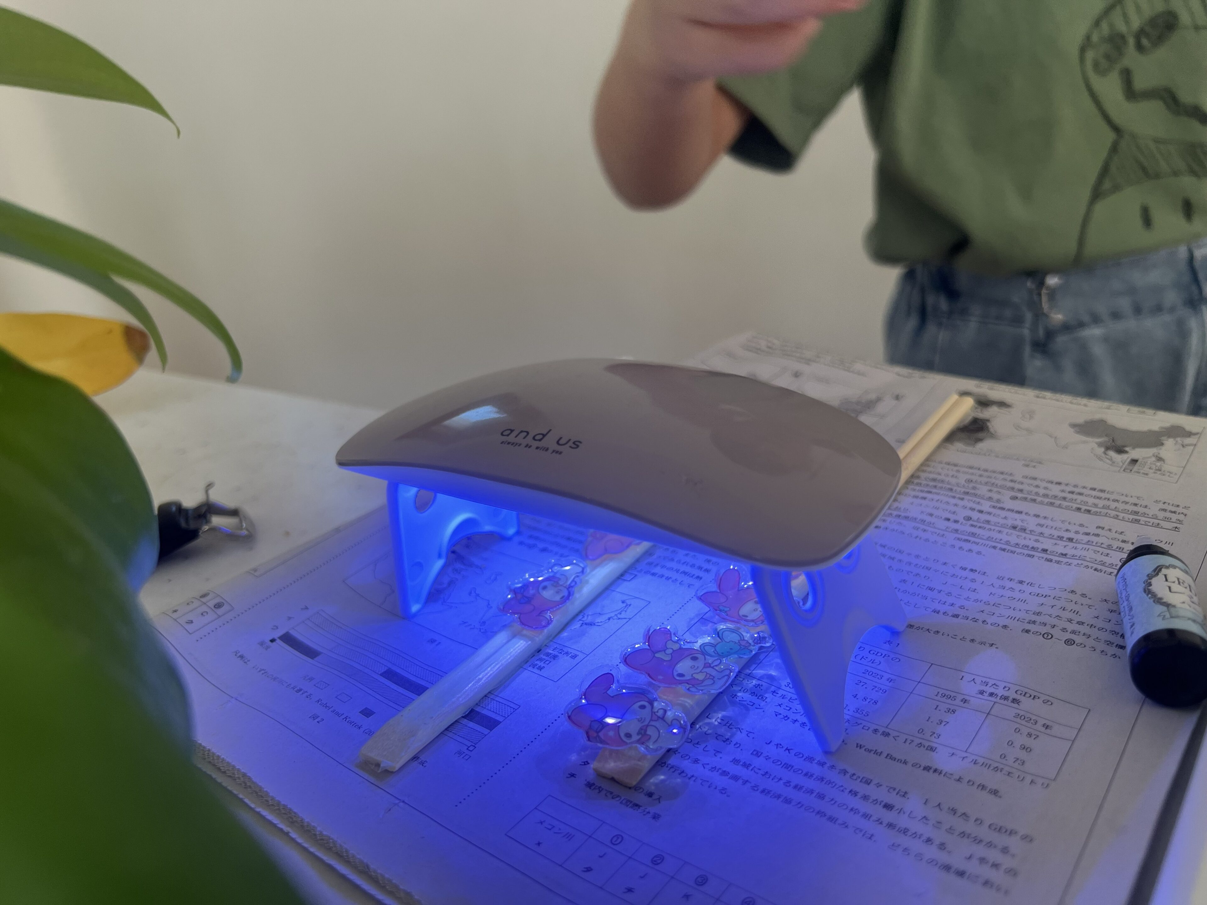 3 ジェルネイル用のUVライトに5分ほど当てると固まります!