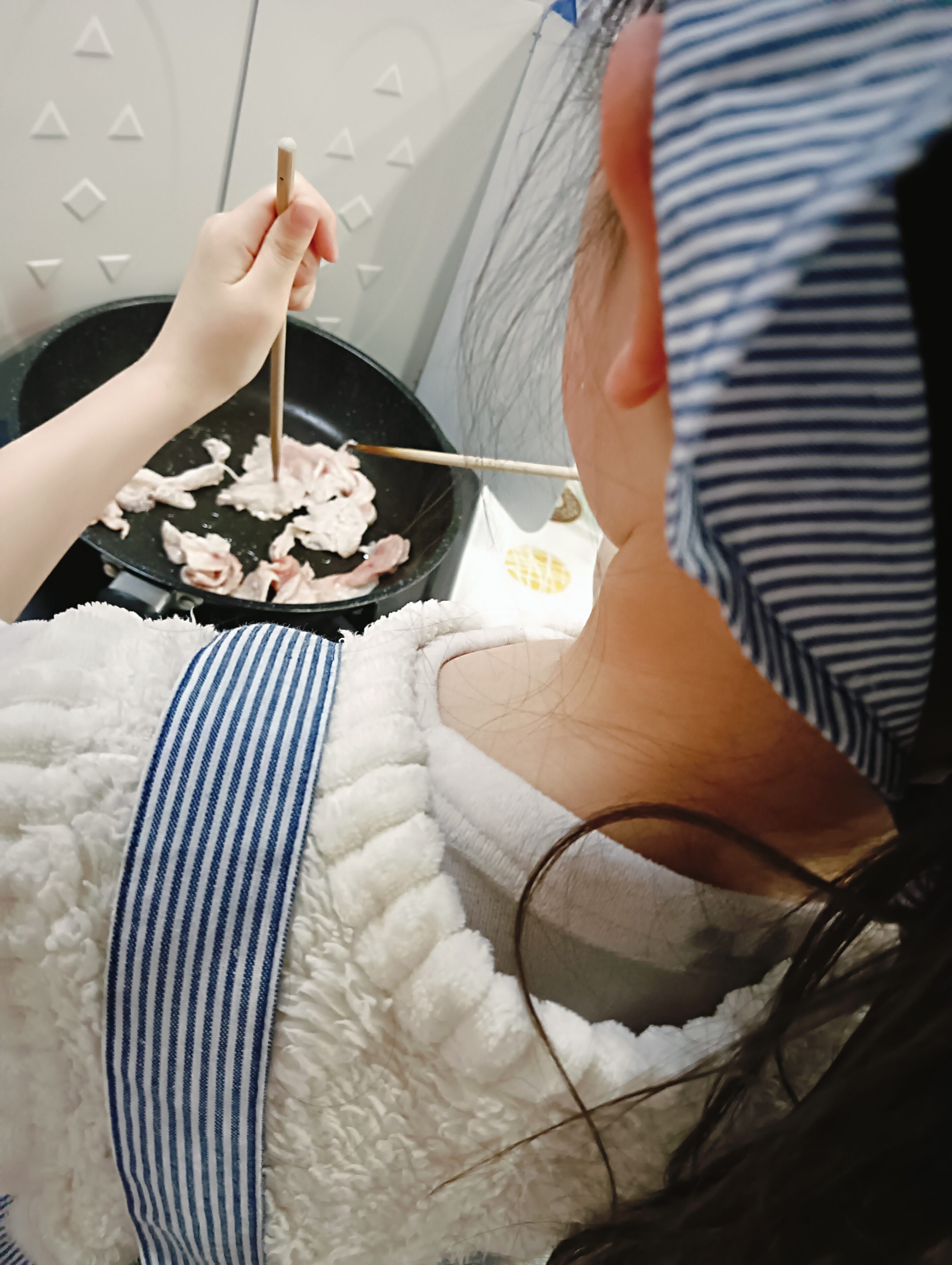 火を使う時は、フライパンを触らないようにすることなど、最低限のルールだけ伝え、後は本人のやりたいようにしてもらいました。