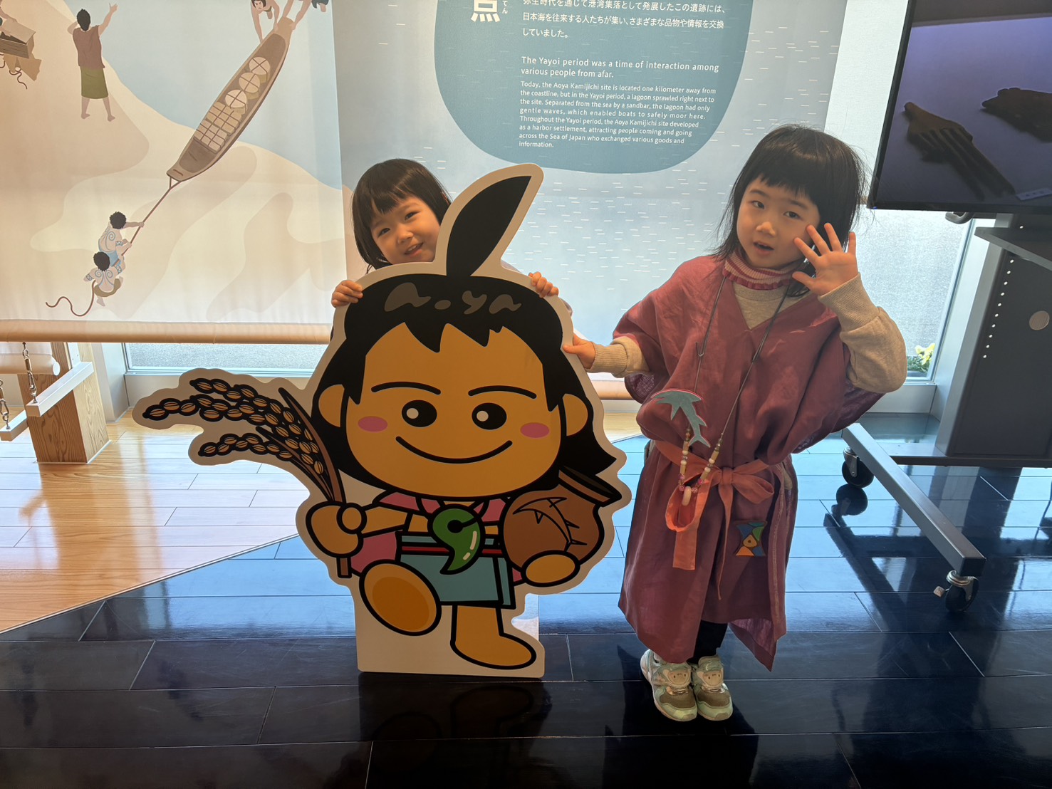 弥生時代の衣装を無料で着られるコーナーもあり、娘たちはすっかりタイムスリップ気分。さらに、勾玉づくり体験(1つ850円)にも挑戦!削りやすい石を使って形を整え、艶出し→好きな色に染める工程。係員さんが丁寧に教えてくれるので、3歳・6歳でも立派な作品が完成しました。