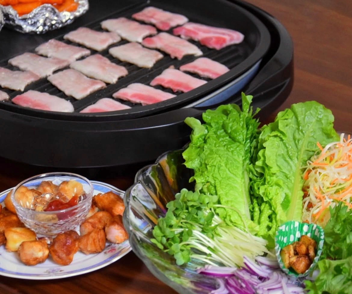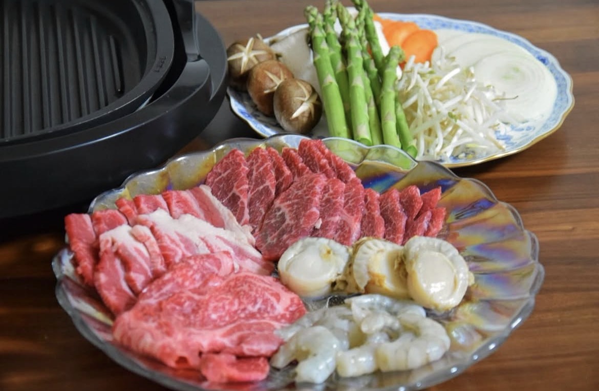 パーティメニューの定番、焼肉。お肉から出たうまみたっぷりの脂で野菜を焼くと、子どももびっくりするほど食べてくれます。