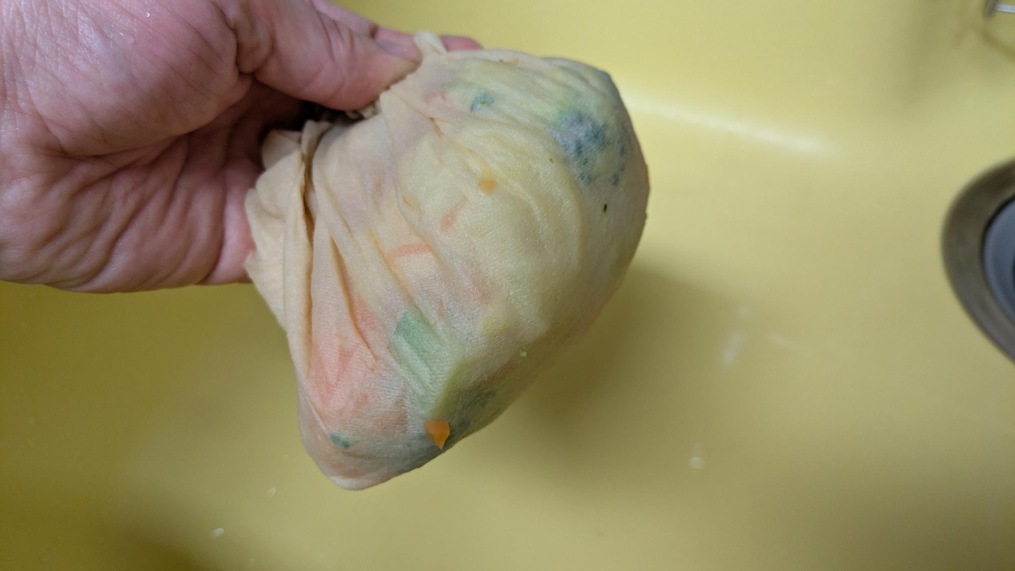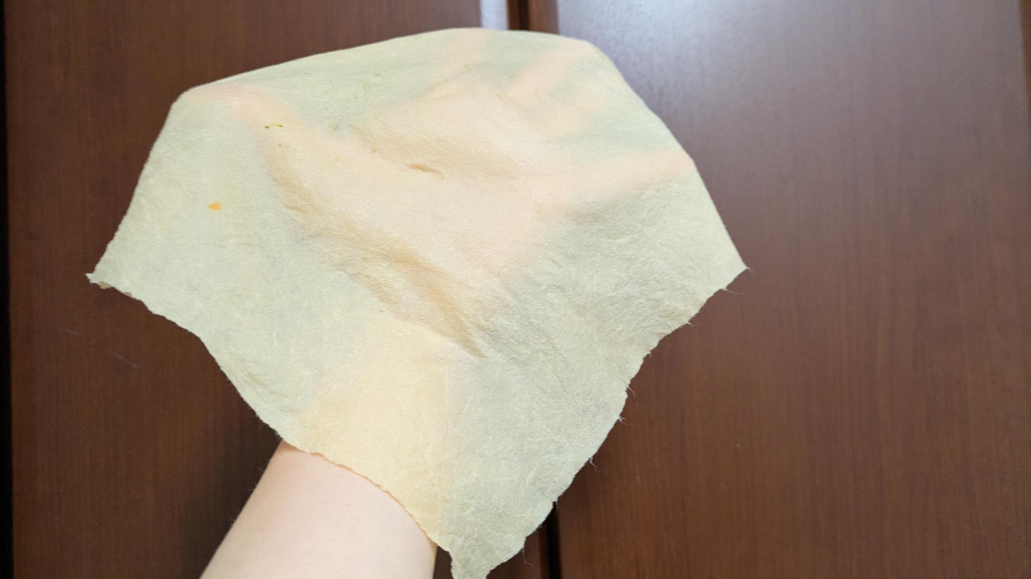 野菜の水切りをした後、キッチンシートを軽く水洗いしても破れていません。