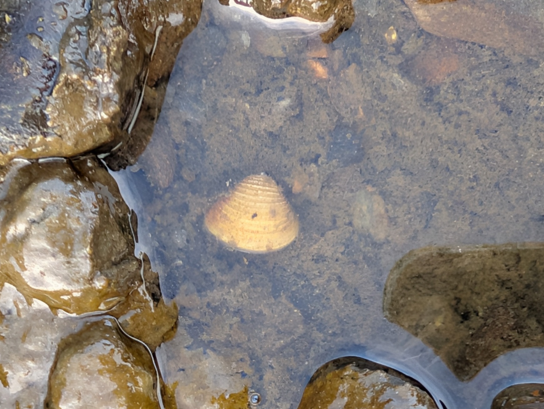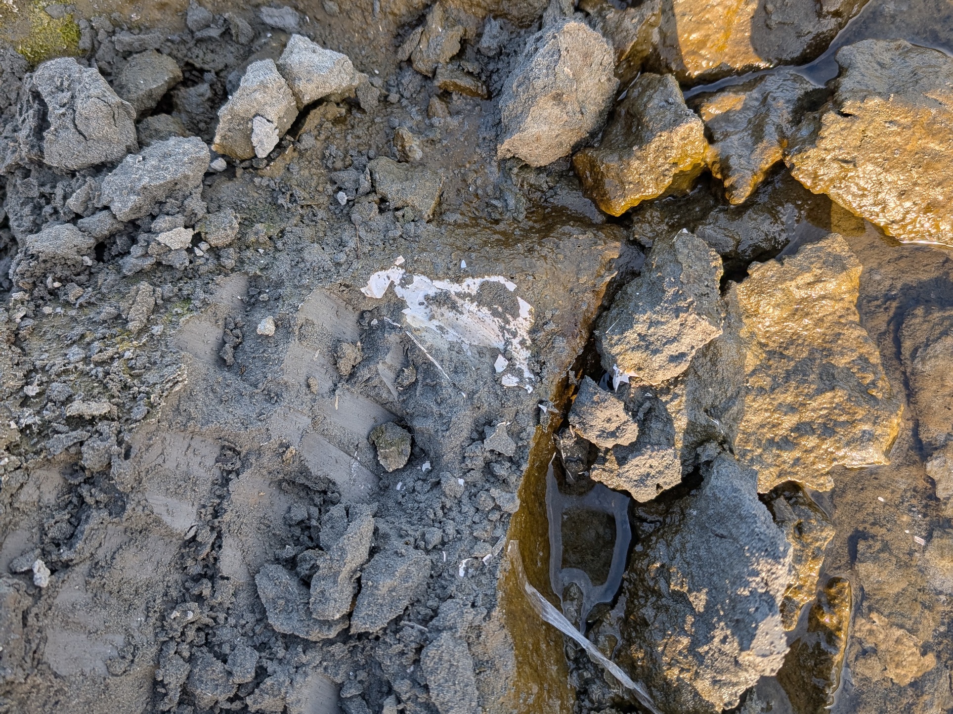 淡水シジミが多く生息しているため、貝殻も落ちています。色が白っぽいので完品の化石かも?と思ってしまいますが、シジミの殻の可能性もあります。