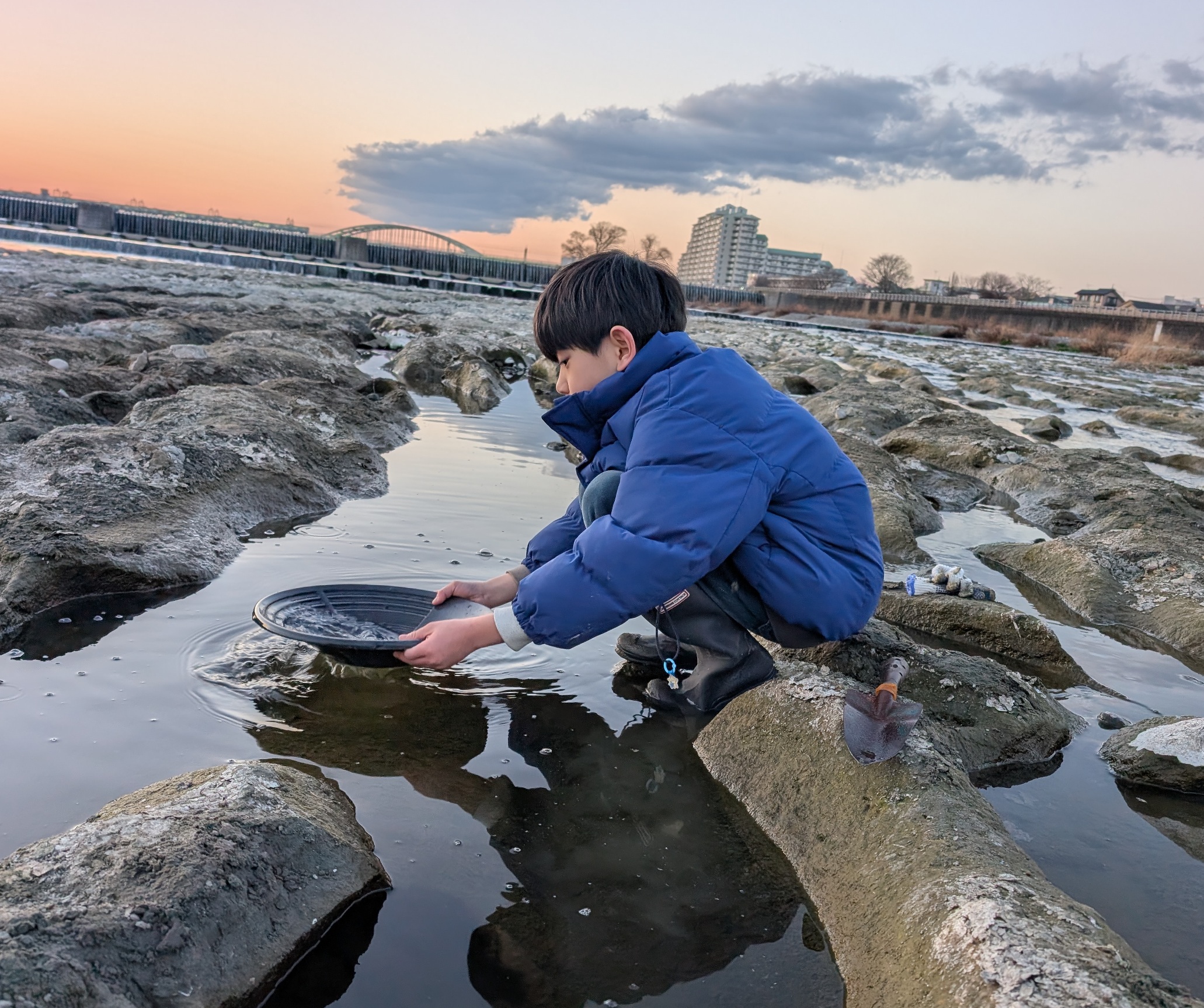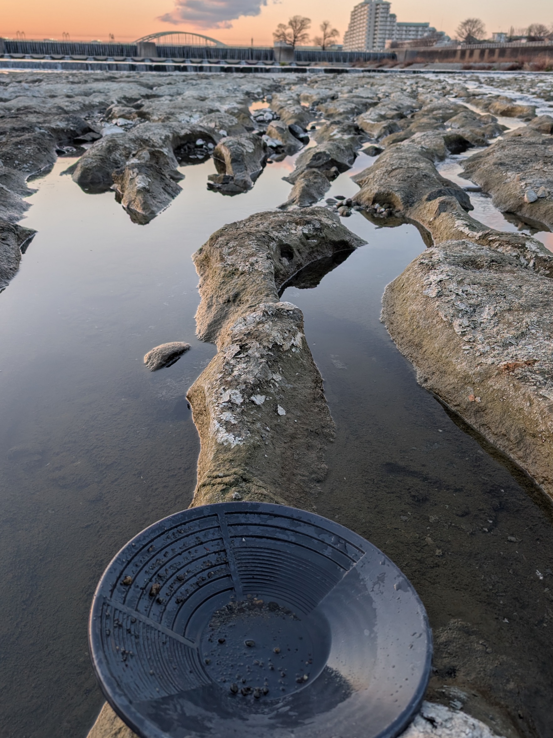 多摩川では少ないそうですが、砂金採りも可能です。以前山梨県の「金山資料館(湯之奥金山博物館)」で学んだ際、日本の川には程度の差はあっても砂金が含まれている可能性があると聞きました。