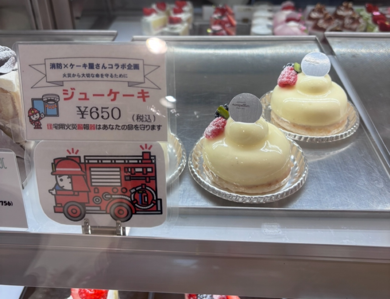 略して「住警器(じゅうけいき)=ジューケーキ」という名前にちなんで、川越地区消防局が川越市内の洋菓子店3店舗と連携し、住宅用火災警報器(住警器=じゅうけいき)をモチーフにした洋菓子「ジューケーキ」の販売をするというとっても面白い企画なんです!
