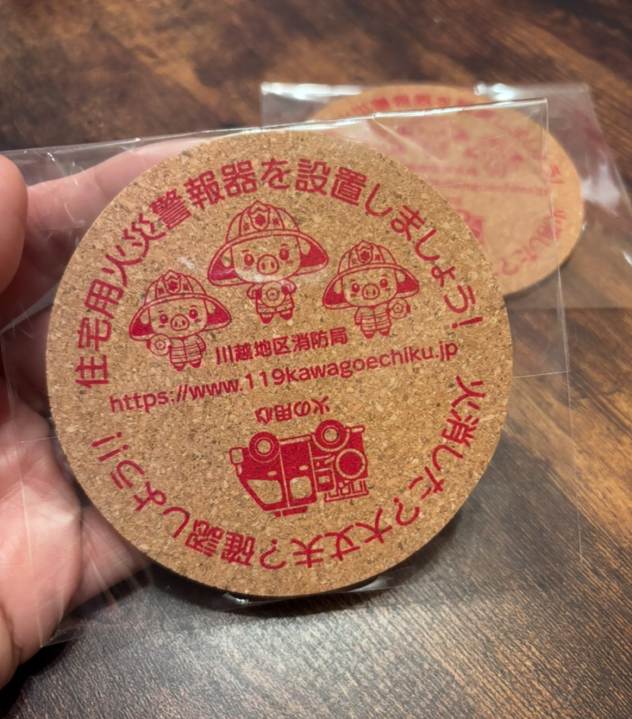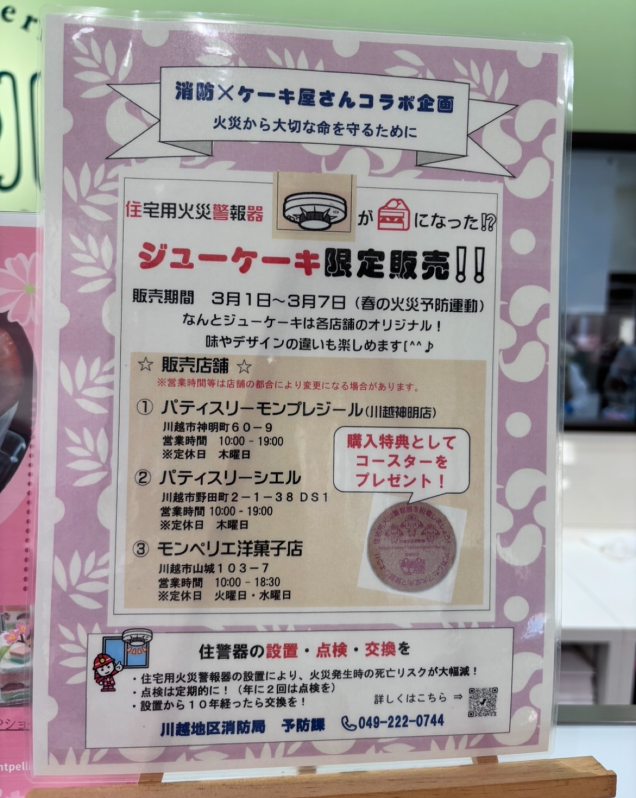 ジューケーキ購入者には「住宅用火災警報器を設置しましょう!」などと記されたコースターが、購入特典でもらえるんです。